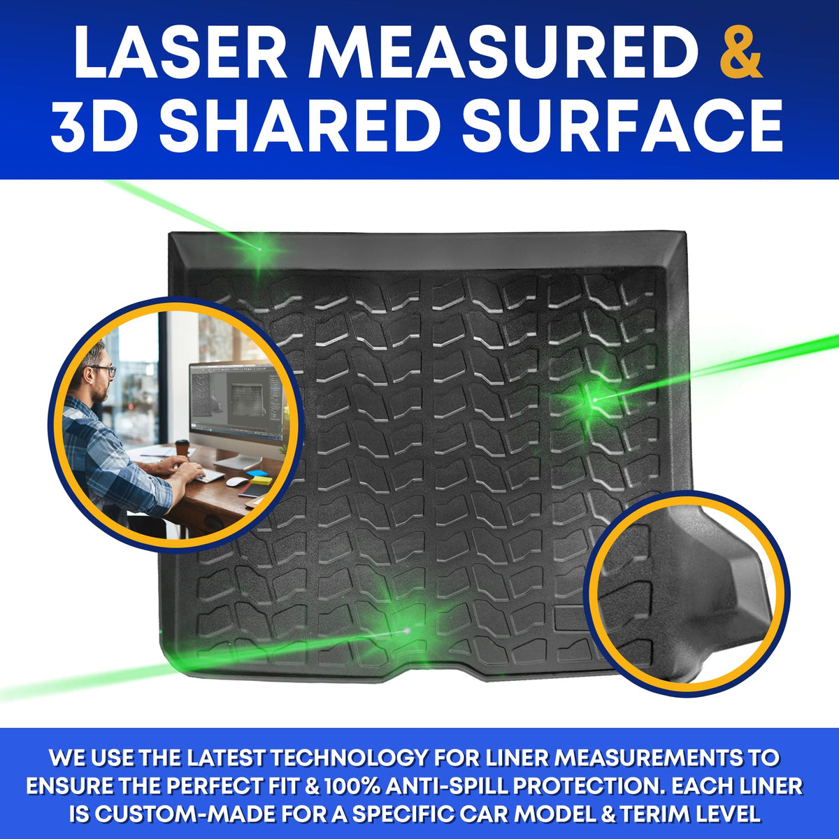 Q: Does the cargo liner provide full coverage for the trunk area?A: Yes, the cargo liner is laser-measured and crafted using 3D scan technology, ensuring a perfect fit that provides complete coverage in the trunk area, preventing dirt and spills from damaging the interior.