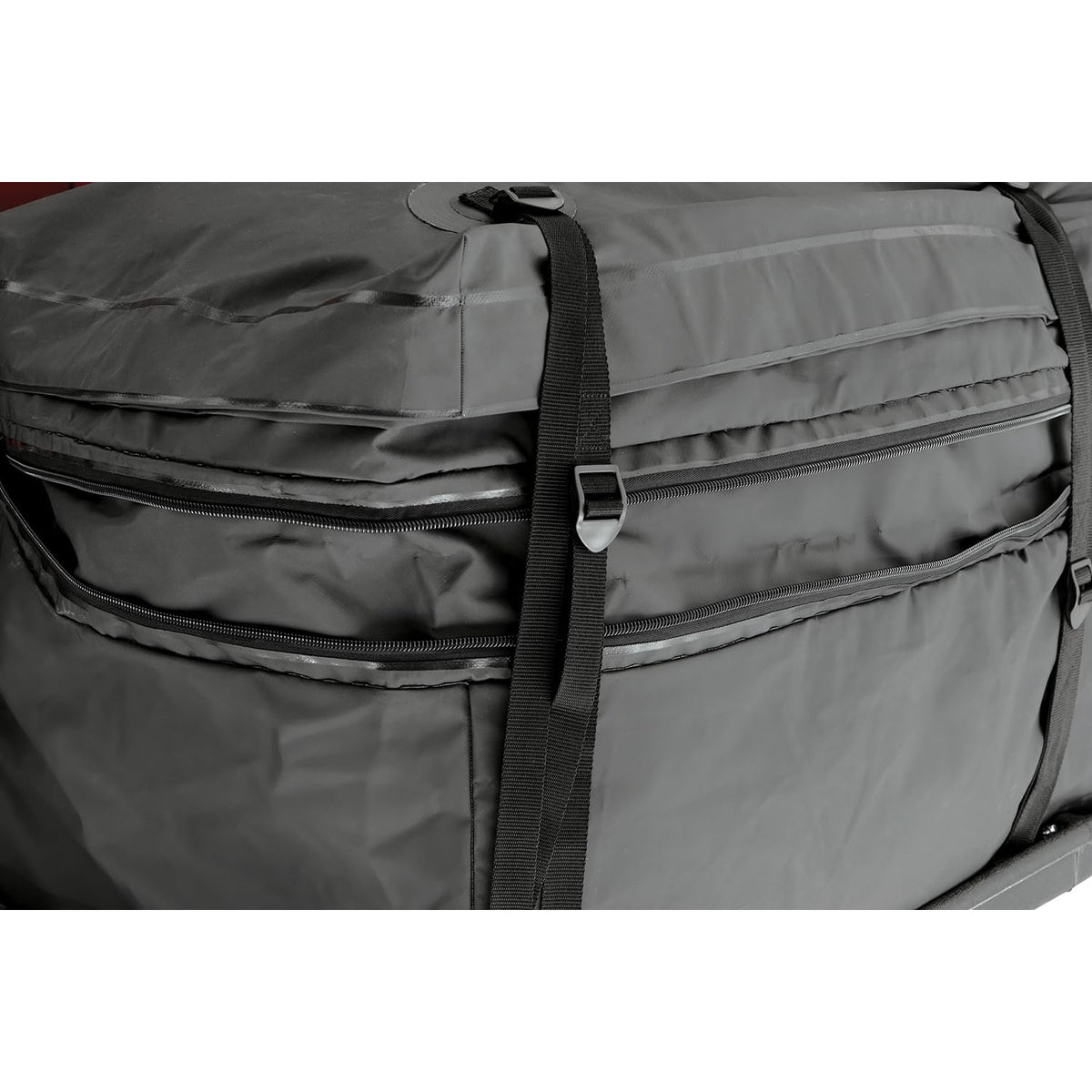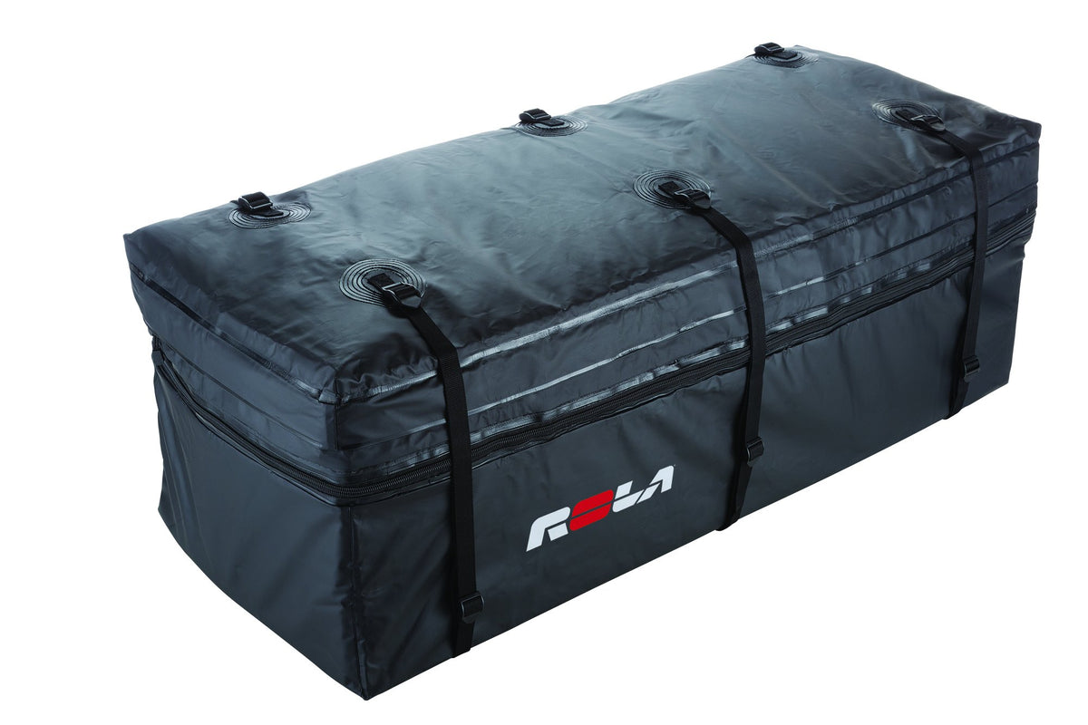 Q: How does the cargo bag attach to my vehicle?A: The ROLA Wallaroo Cargo Bag features a six-strap system that securely attaches to hitch-mount cargo trays and baskets, allowing for safe and stable transport of your belongings.
