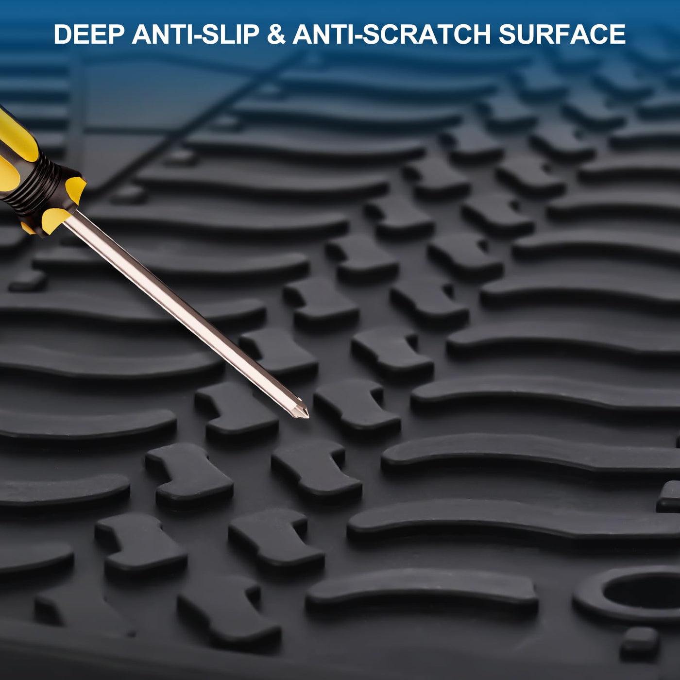 Appropriate Size & Adjustable: Size perfectly matches your beloved car; if you still need to change the size,can be trimmed with scissors to suit your vehicle which design with decorative line. | Easy To Clean & Durability Car Carpet: Clean the dirt and mud on the pad only by using a common hose; without maintenance, the durability of the product itself can be maintained for a long time. | All-weather Protection Car Floor Liners: The product is made from odorless rubber and is designed to prevent the deformation of high temperature or low temperature. The surface is like a tire pattern design, which can enhance the anti slip function. | High Quality Material & Tasteless: The product uses high quality rubber material, has the corrosion resistance and not easy to deform the characteristic, will not bring the peculiar smell in the vehicle, maintains the vehicle environment air fresh. | Strong Grip & Safety Upgrade: Product adhesion is strong, can be effectively fixed on the floor, the use of the process is not easy to shift, safe and more secure.