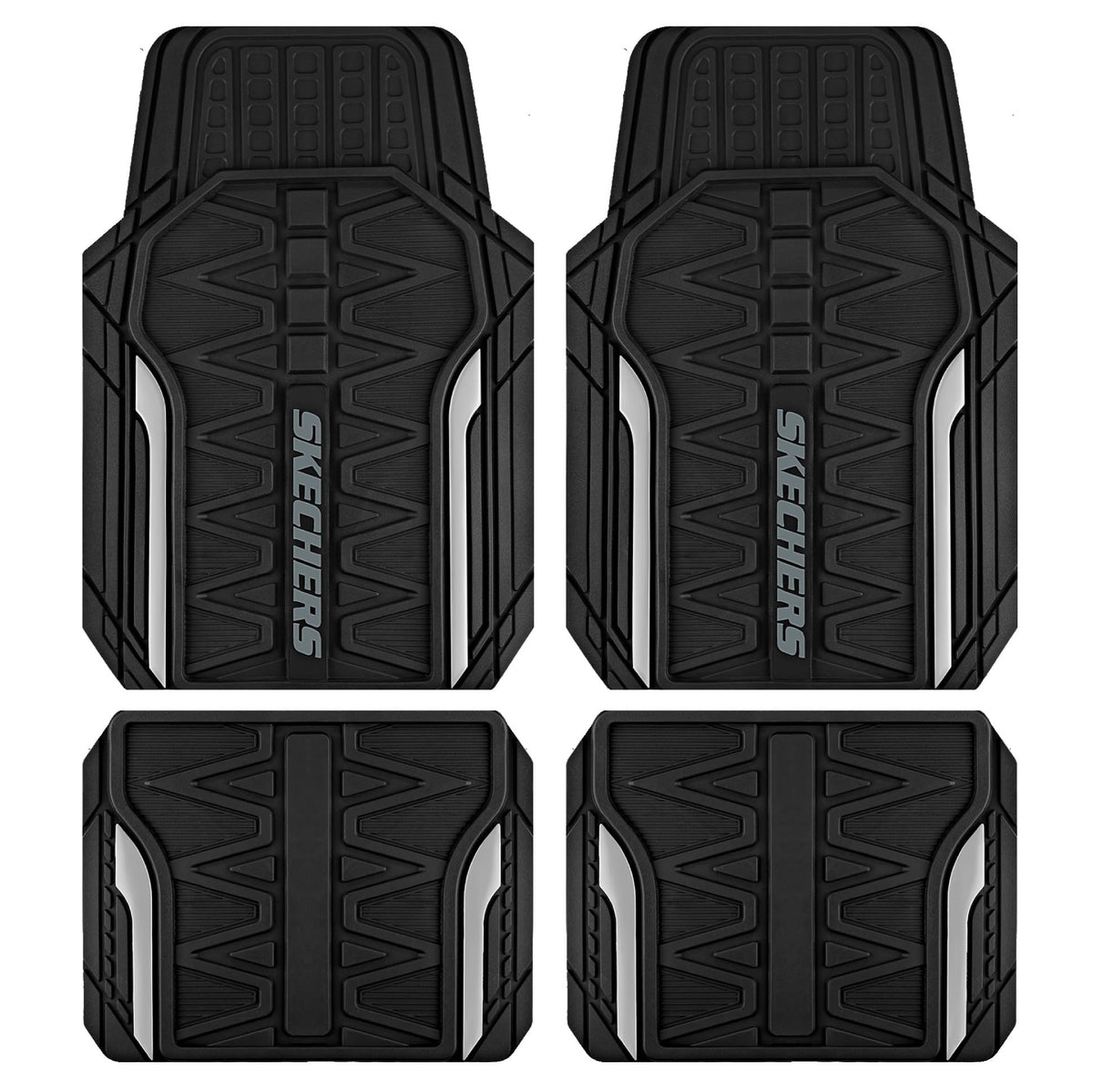 Skechers Car Floor Mats,Heavy Duty Rubber Car Mats Full Set,All -Weather Car Mats,Waterproof Trim-To Fit Universal Floor Liner Car Accessories,Automotive Floor Mats For Cars Trucks Suv,Sliver