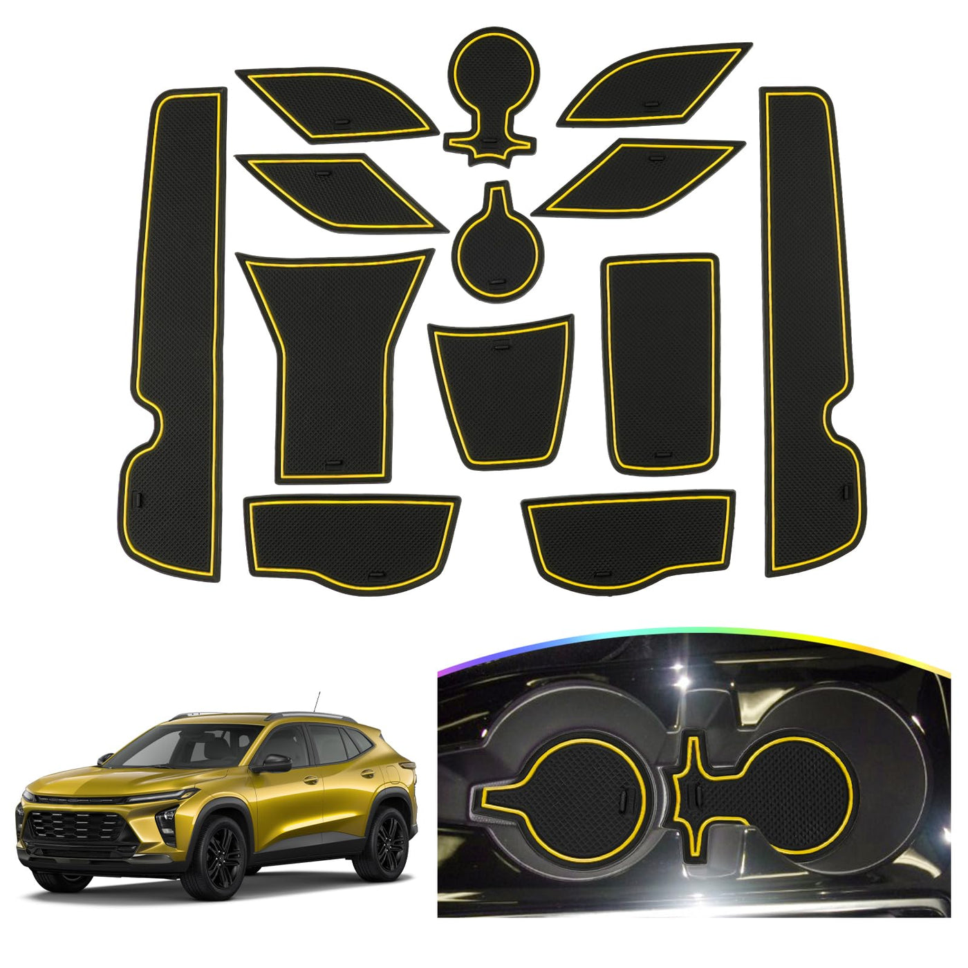 SKTU 2024-2025 Chevy Trax Door Slot Mat - 14PCS Fit 2024-2025 Trax Door Compartment Cup Center Console Liners (Yellow) for LS, L