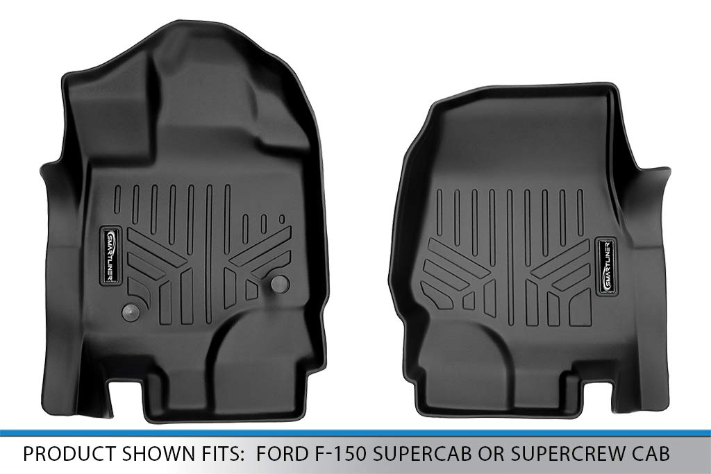 Smartliner Custom Fit Floor Mats 1St Row Liner Set Black Compatible With 2015-2022 Compatible With Ford F-150 Supercab Or Supercrew Cab