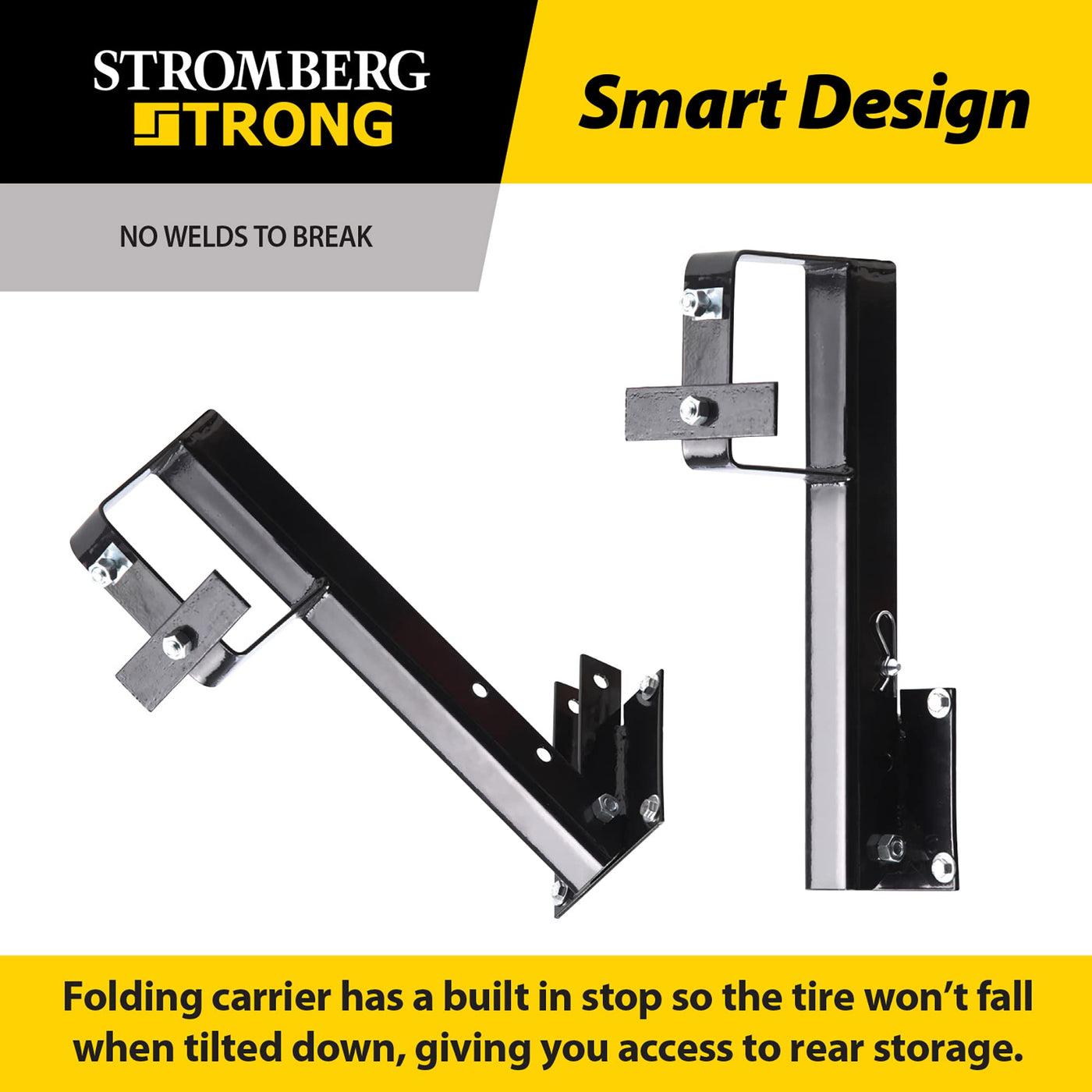 Stromberg Carlson TR-2 Folding Spare Tire Carrier for RV - Heavy Duty Trailer Spare Tire Mount for 4 Square Bumpers, Fits 15