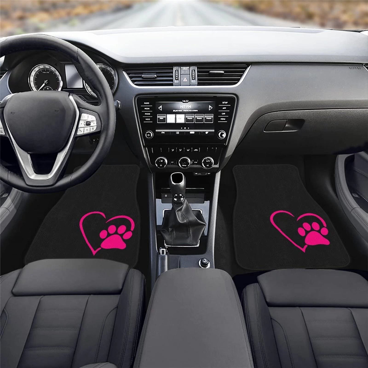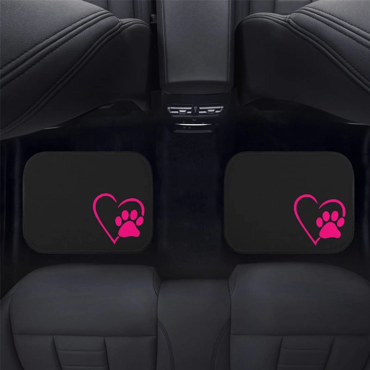Suhoaziia Dog Paw Heart Pink Car Floor Mats, Front Rear Floor Liner with Anti-Slip Rubber Backing Full Set of 4, All Weather Pro