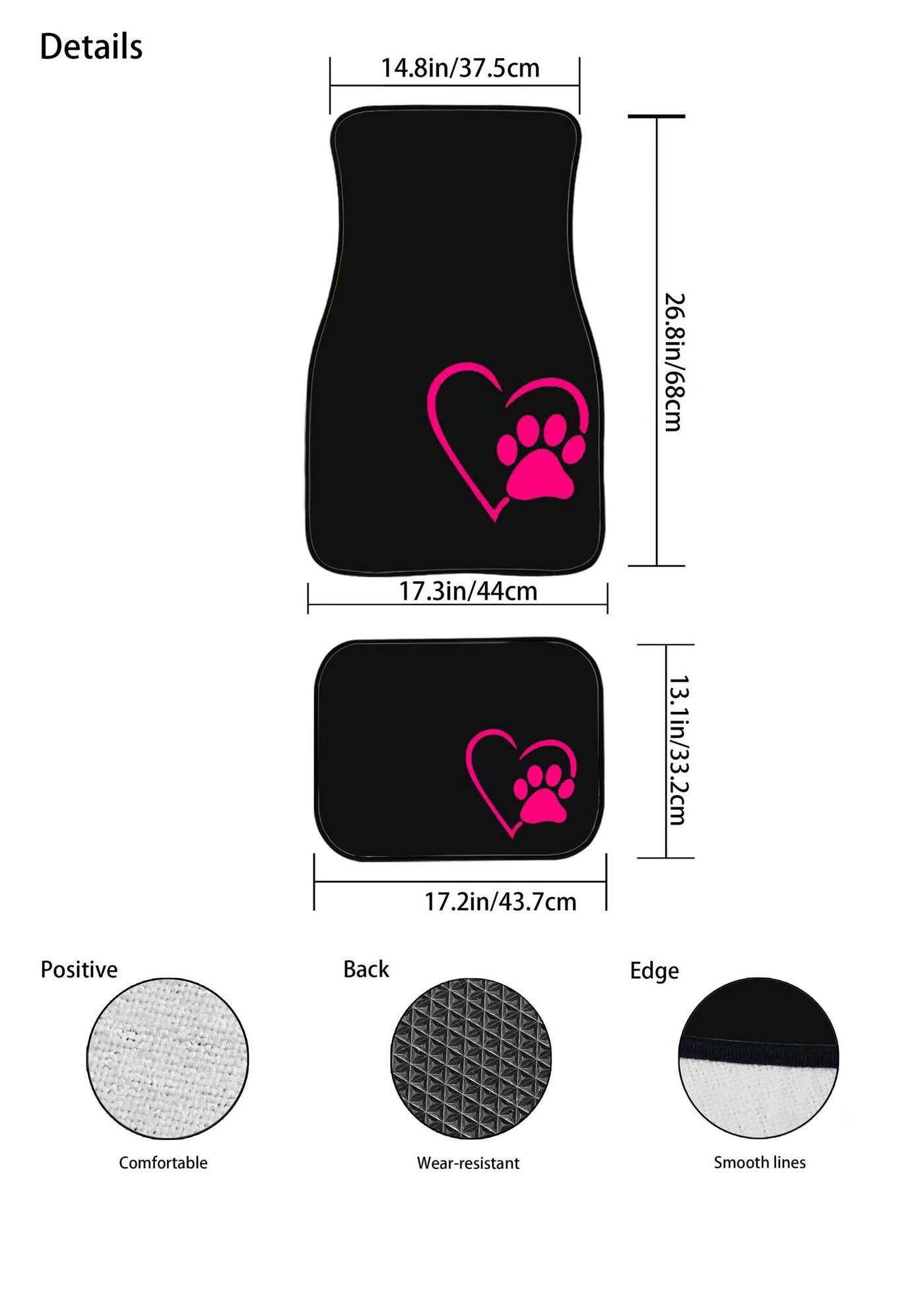 Suhoaziia Customized Fashion 4 Packs Car Floor Mats for Women Men Size: 2 Front Mats: 26.8 inch x 17.3 inch (68x44cm), 2 Rear Mats: 13.1 inch x 17.2 inch (33.2x43.7cm). -Waterproof and stain resistant, All Climate All Weather Protection. Non slip rubber backing, keeps mat in the place. Easy clean, Easy install and uninstall. Universal fit design, our floor mat fit most Sedans, SUVS, Trucks and Vans. Recommended for every car owners, best for Holiday, Birthday, Valentine's Day, Anniversary Gift. Extend a warm and fashion car floor mat make feel Comfortable your friends and family ,the vivid 3D printing car foot pads fit more cars use,it can more effectively to keep your car comfortmation let your mood more happy. Support Customization You can customize the pattern and text you like. If you have any questions, please leave your messages, we promise to reply you within 24 hours and offer you best services. Thanks for coming to my store and enjoy your shopping!