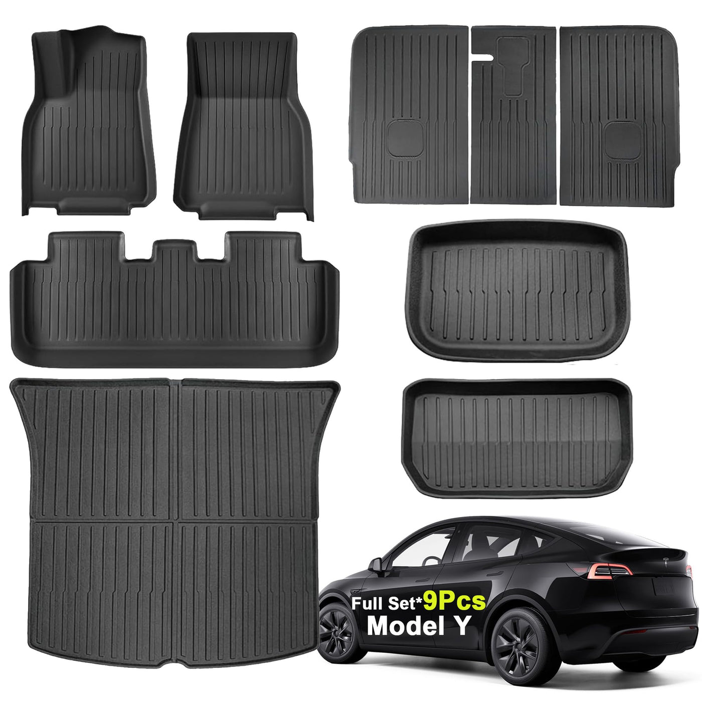 Super Liner Tesla Model Y Floor Mats 2025 2021-2024 | Custom Fit All-Weather 9-Piece Set Tpe Material| Back Seat Protector,Cargo