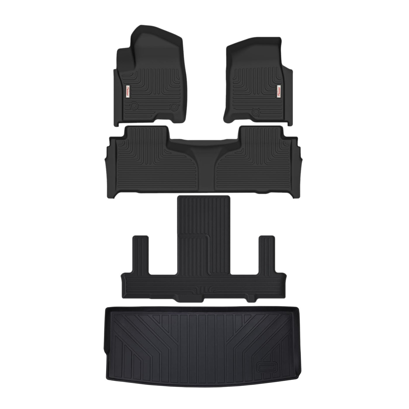 Tesson All Weather Floor Mats Accessories 3 Row Liners Set & Cargo Mats Custom Fit for 7 Seats 2021-2025 Chevy Chevrolet Tahoe/G