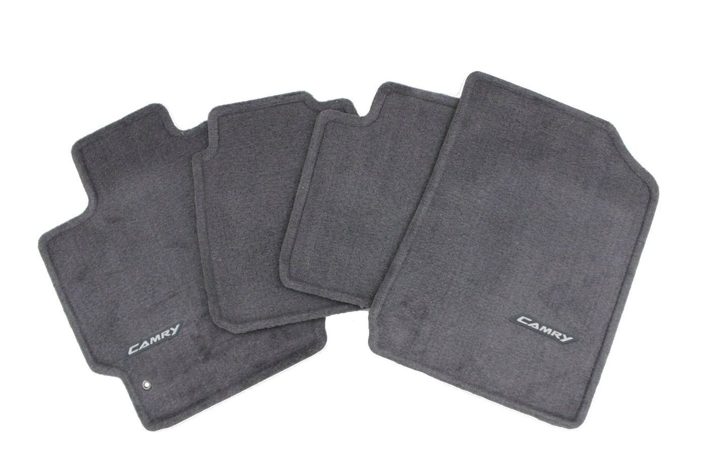 Carpet floor mats are custom fitted to the Camry's floor pattern. Enhances interior appearance and provide optimal protection to original carpet. Non-slip, ''nib'' backing and positive retention clips help prevent mats from sliding. Embroidered with Camry logo to help ensure owners have the right mat for their vehicle. Color coordinated to vehicle interior. Constructed of high grade plush nylon carpeting.