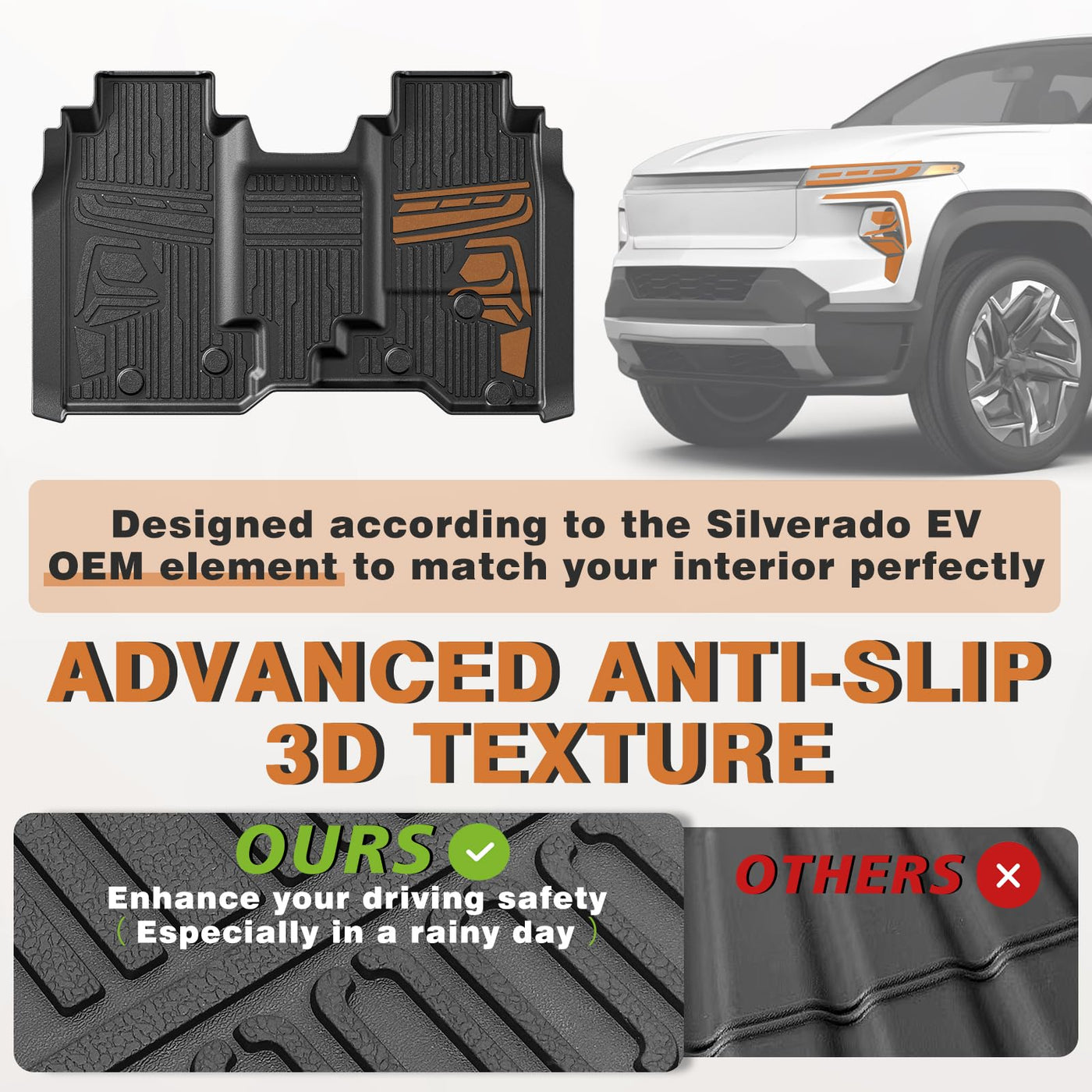 Triplealiners Floor Mats & Truck Bed Mat All Weather Liners Front Rear Full Set Compatible With 2024 2025 Chevrolet Silverado Ev