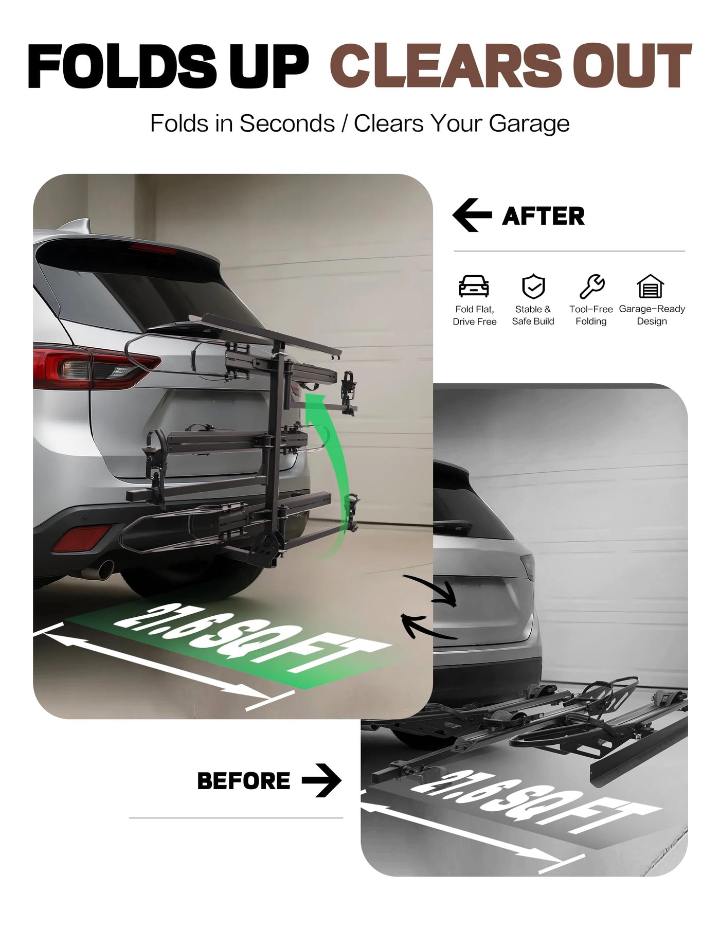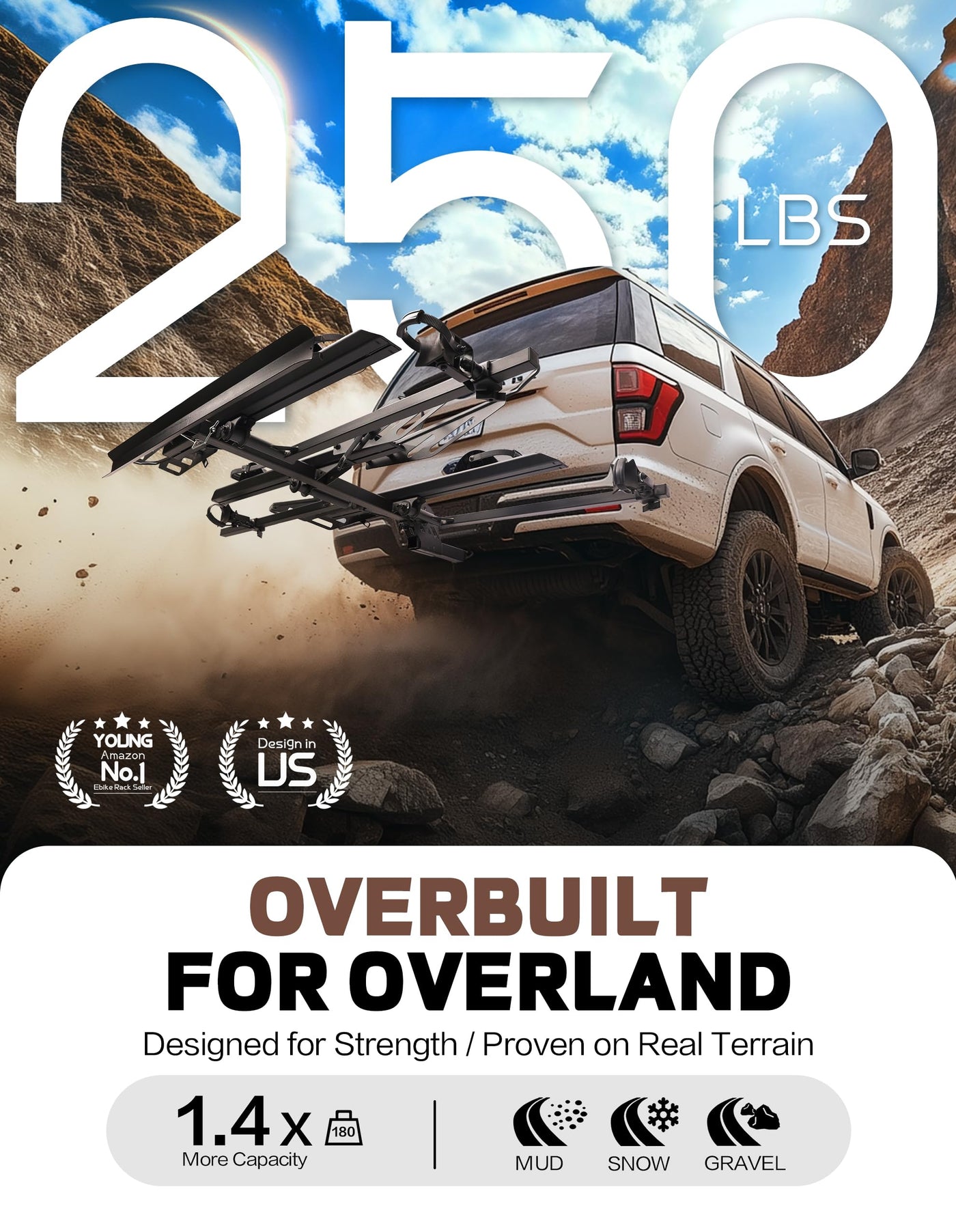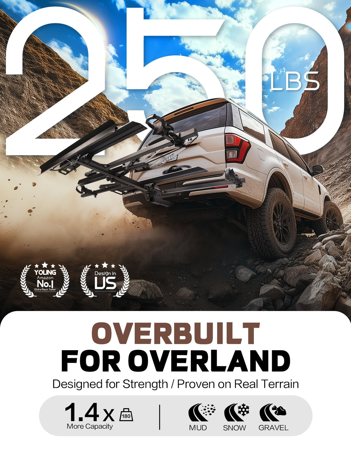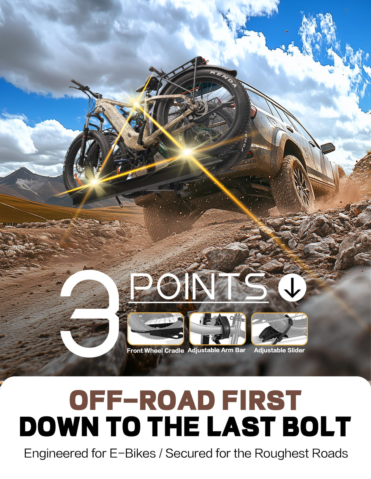 YOUNG ELECTRIC 250LBS. Capacity Foldable Aluminum 3-Ebike Rack with Ramp for Car SUV RV Truck Trailer and Van, 2 Inch Receiver