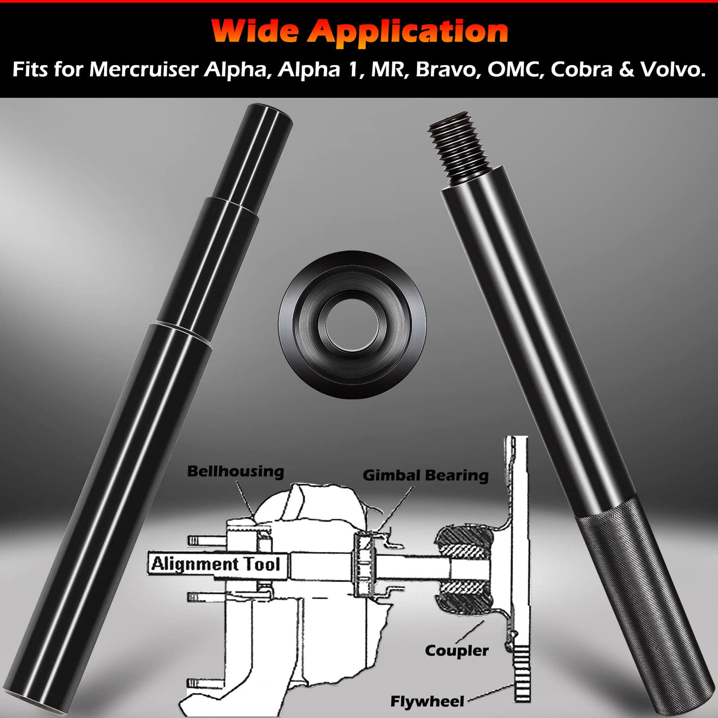 Gimbal Bearing Alignment and Install Kit Fits for Mercuiser Alpha Alpha 1 MR Bravo OMC Cobra Volvo Compatible with Mercuiser Alpha Alpha 1 MR Bravo OMC Cobra Volvo. Made of steel with solid and sturdy, surface black coated to ensure resistance to corrosion and rust, protection, years of trouble-free use and continue to perform as designed. Used to align drive shaft receiver to gimbal bearing. Also used to install drive shaft seal AND gimbal bearing with included bearing install adapter. Bearing install adapter no drilling hole required. Proper alignment prevents wear on the bearing, drive and coupler.