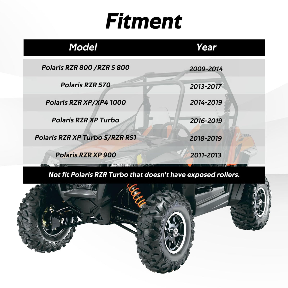 Note: This kit is not compatible with Polaris RZR Turbo models that lack exposed rollers.