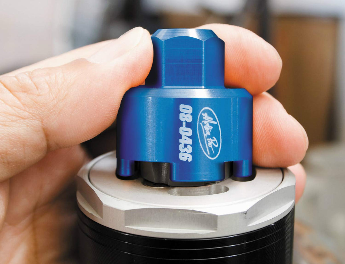 Q: How do I use the Motion Pro Compression Bolt Removal Tool?A: To use the Motion Pro Compression Bolt Removal Tool, align the tool with the compression valve assembly on the fork cap, ensuring a secure fit, and follow the instructions provided in the user manual for proper removal and installation.