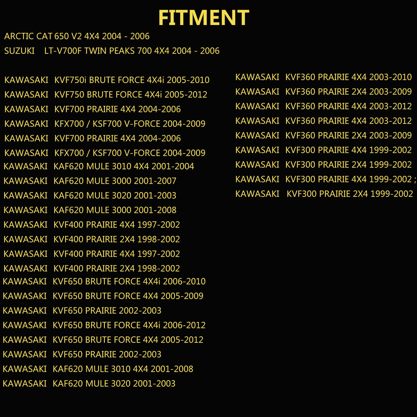 Q: What models are compatible with the Primary Drive Clutch Puller Tool?A: The Primary Drive Clutch Puller Tool is compatible with various Kawasaki models including the Brute Force 300, 360, 400, 650, 700, 750, as well as the Mule 3000 and 4000 Series. It also works with Suzuki 700 Twin Peaks 4x4 (2004-2006) and Arctic Cat 650 V2 4x4 (2004-2006).