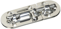 Constructed of investment cast 316 stainless steel for superior corrosion resistance and durability, these surface mounted barrel bolts provide additional security as either a primary or back-up locking system. Ideal for use on doors, gates and cabinets they are appropriate for vertical, horizontal, left or right-hand applications. In vertical use, notch in barrel holds bolt in locked position. Installs easily. Countersunk for FH fasteners (not included).