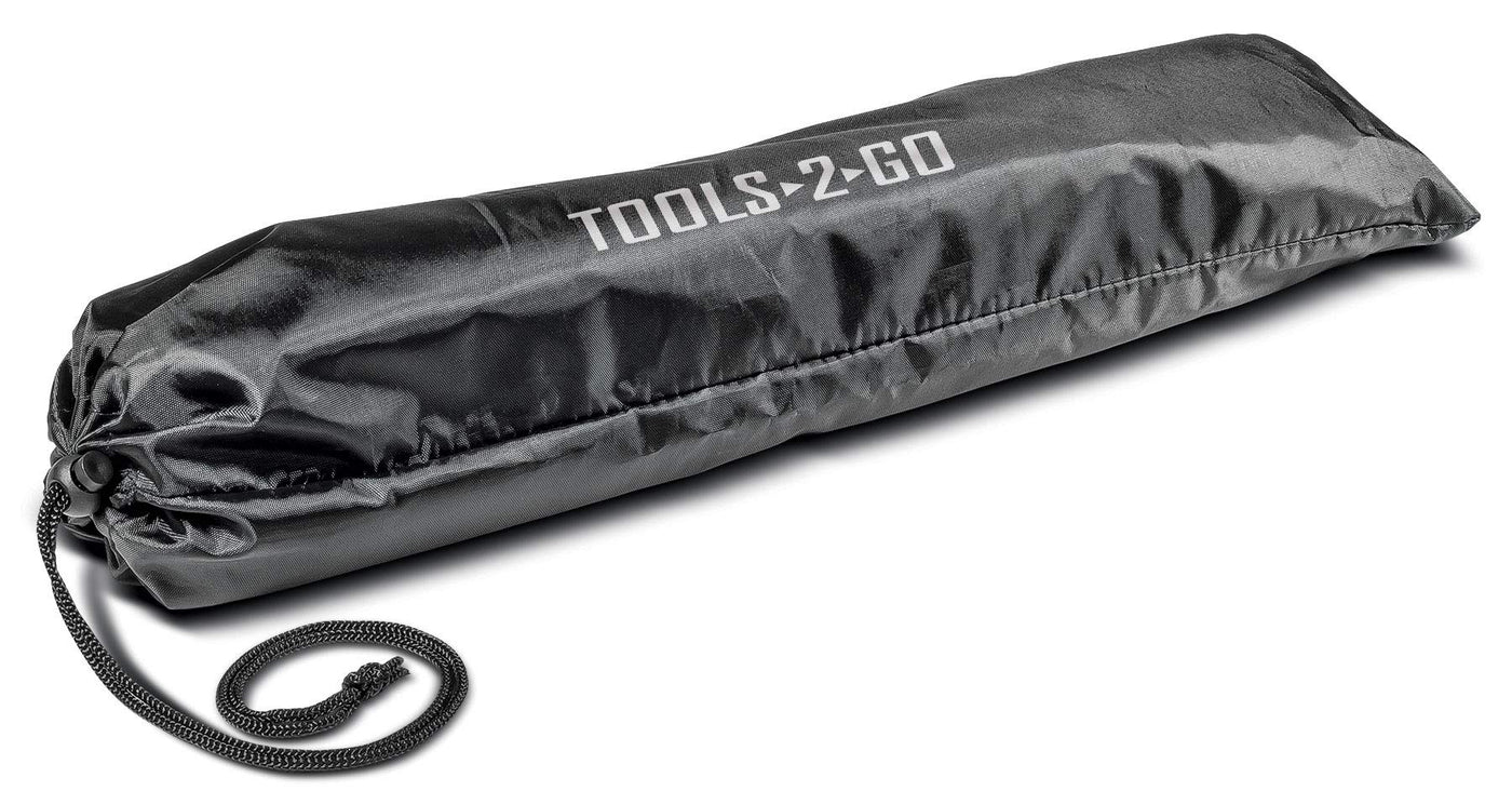 Q: How portable is the Tools-2-Go Tool Set?A: The set comes in a compact roll pouch that measures 12 inches long by about 5 inches in diameter and weighs just under 4 lbs, making it easy to store and transport for any roadside emergencies.
