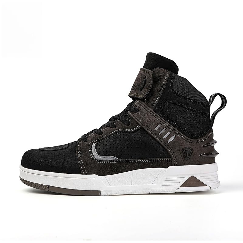 Bofucn Motorcycle Leather Boots,Street Riding Shoes,Anti-Slip Side Zipper Shoes for Men and Women (Black/Grey, Adult, 10 Men/11.