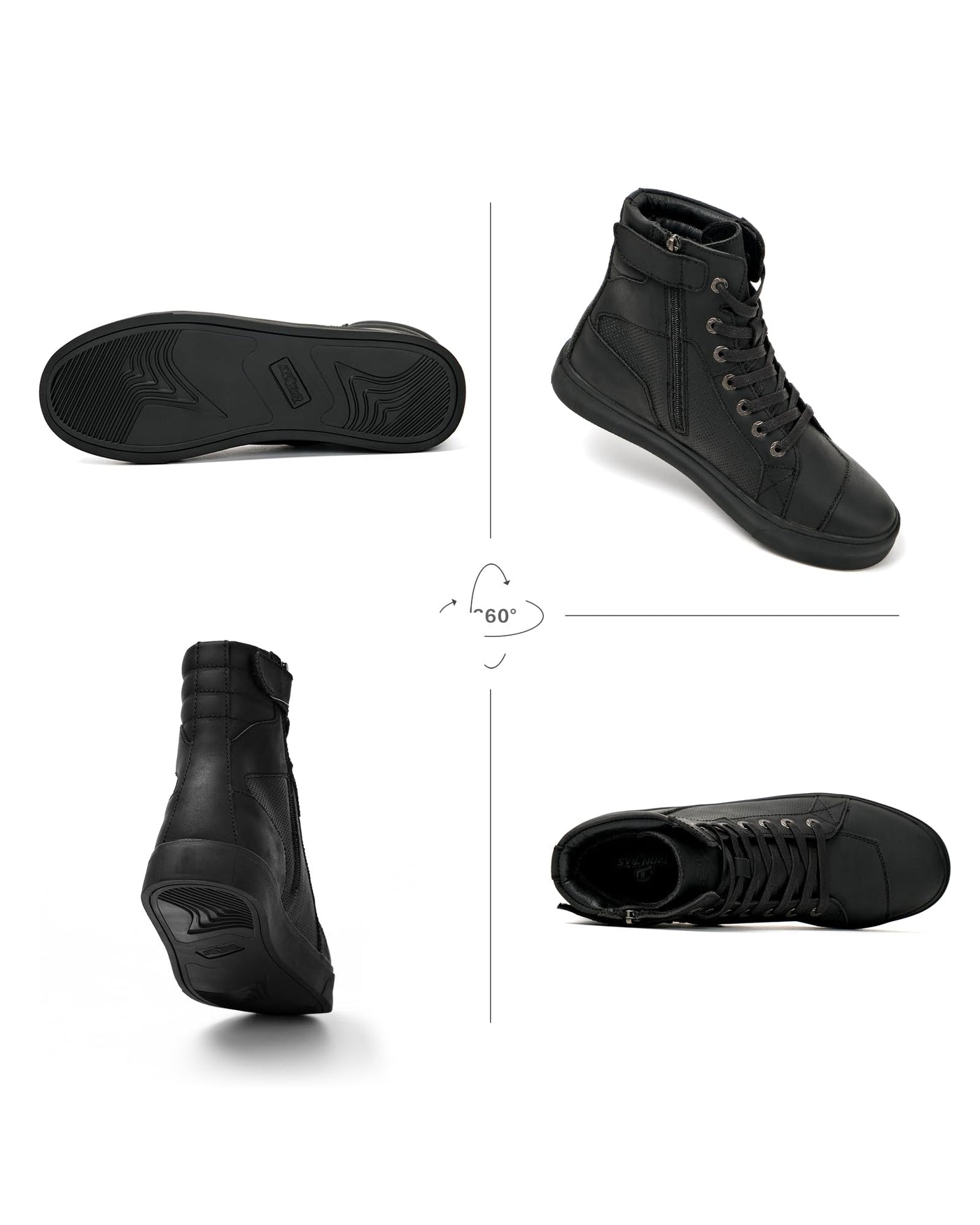 BORLEN Motorcycle Riding Shoes Cowhide Leather Breathable Casual Outdoor Street Motorcycle Boots for Men Black 8