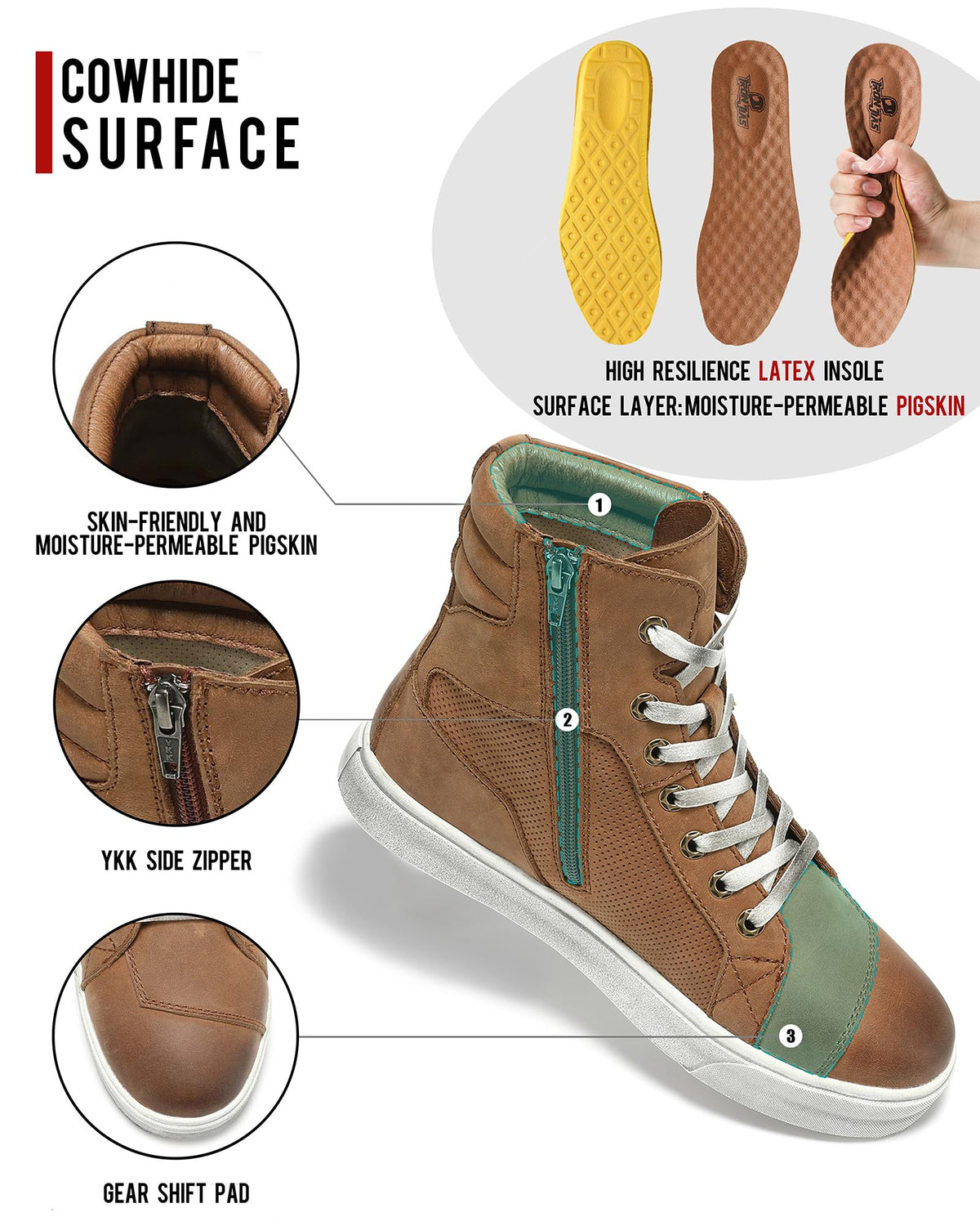 BORLEN Motorcycle Riding Shoes Cowhide Leather Breathable Casual Outdoor Street Motorcycle Boots for Men Brown 8