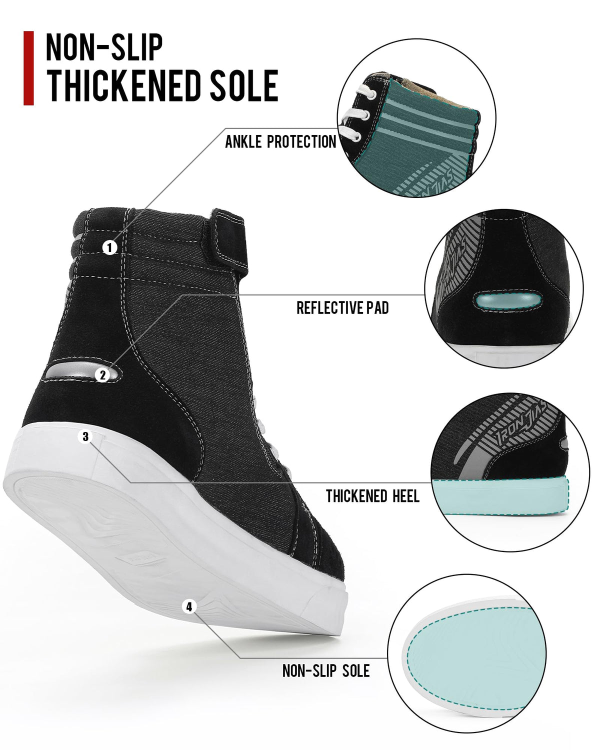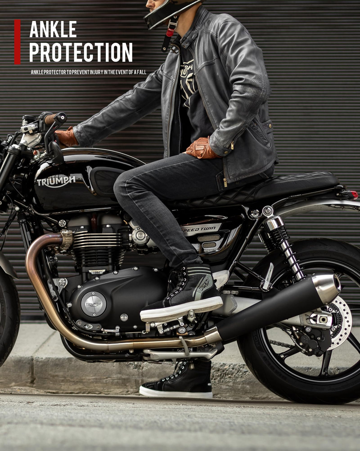 Iron Jia'S Motorcycle Shoes For Men, Anti-Slip Breathable Street Casual Motorcycle Riding Boots With Side Zipper, Ankle Support,