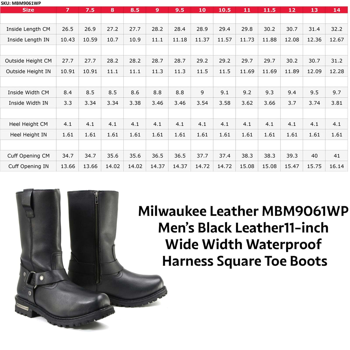 Milwaukee Leather Mbm9061Wp Men’S Black Leather11-Inch Wide Width Waterproof Harness Square Toe Motorcycle Boots