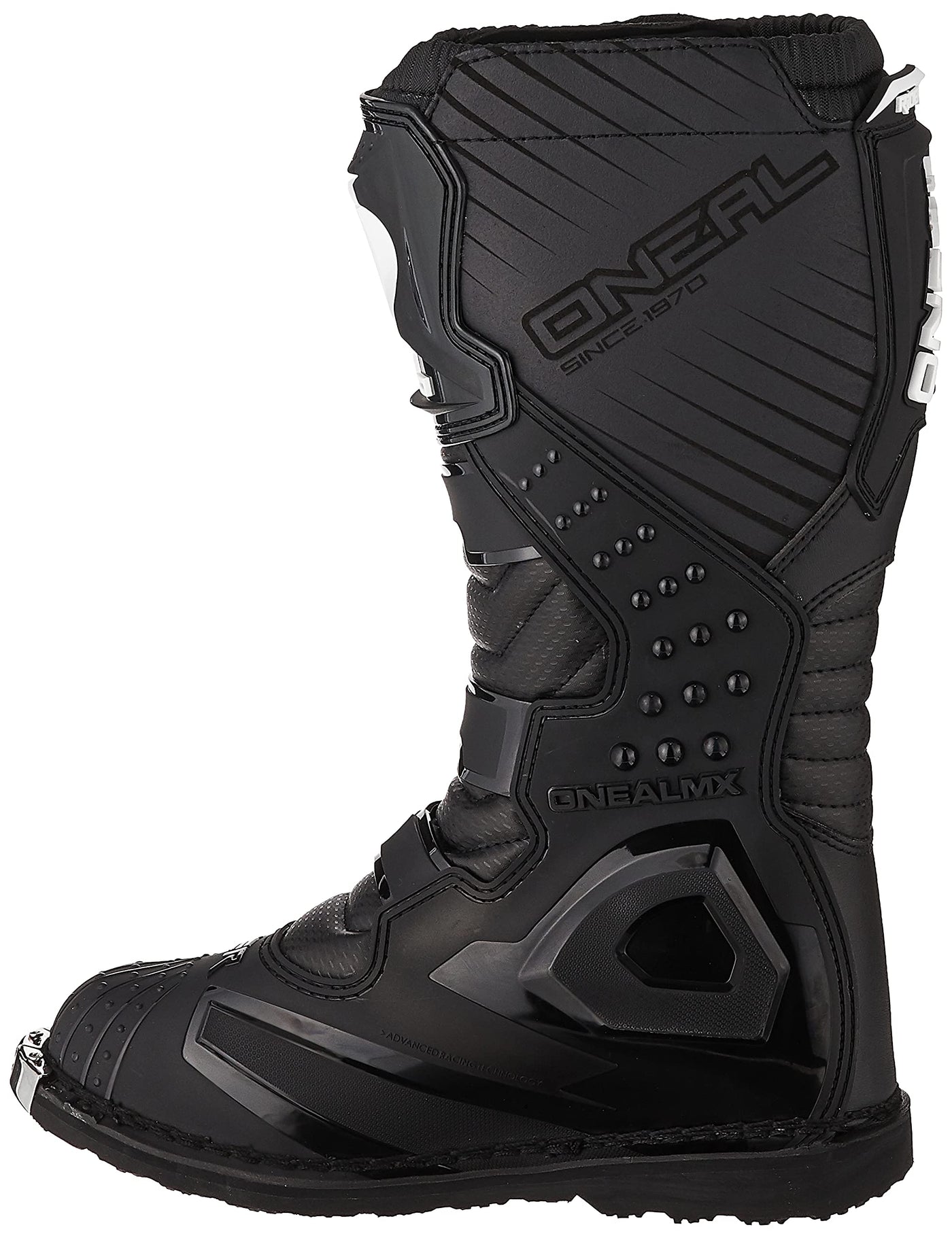 O'Neal produces motorcycle and cycle gear, parts, apparel and accessories that absolutely offer the best in comfort, quality and protection every time you ride. Security, quality and protection you can trust after nearly 40 years of racing. Features: - injection molded plastic plates protect against impacts - metal shank insert reinforces the shape of the Boot and adds support - easy to operate, snap-lock adjustable four buckle closure system - durable Goodyear welt sole is properly Balanced with no unstable rocking - metal toe guard to protect the sole against delaminating - moderate grip sole is great for track, trail and ATV riders - air mesh interior, generous heel support and cushioned insole for extra comfort - synthetic leather heat shield to prevent heat damage - rear pull tab for extra leverage.