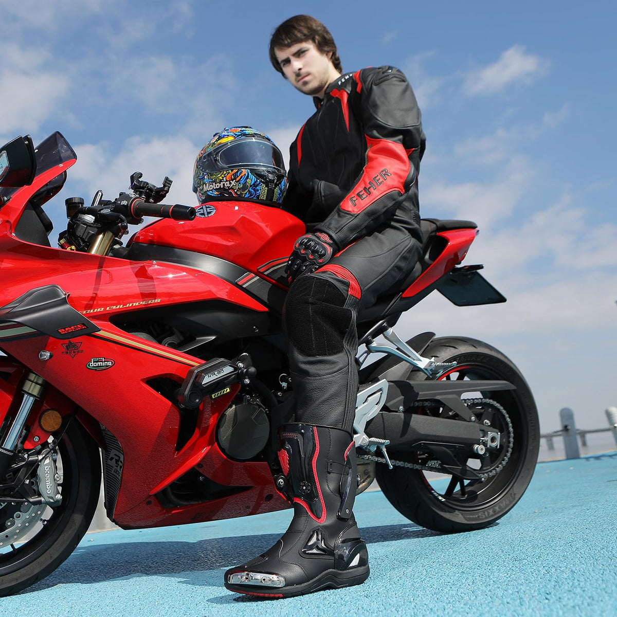 Zeozoom Motorcycle Riding Boots Motorcycle Leather Boots for Women and Men Protection Anti Slip Racing Sports (Black, Adult, Men