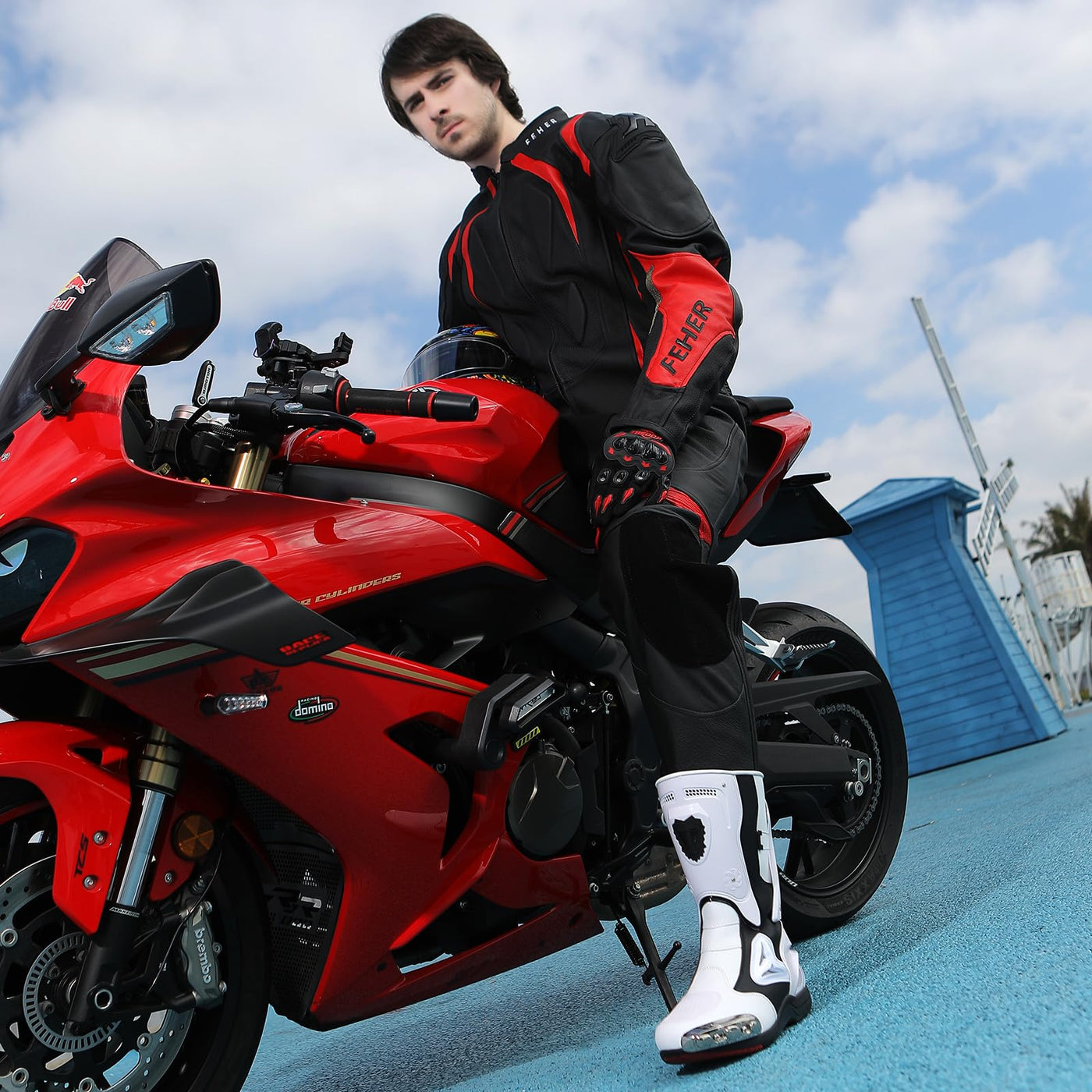 Zeozoom Motorcycle Riding Boots Motorcycle Leather Boots for Women and Men Protection Anti Slip Racing Sports (White, Adult, Men