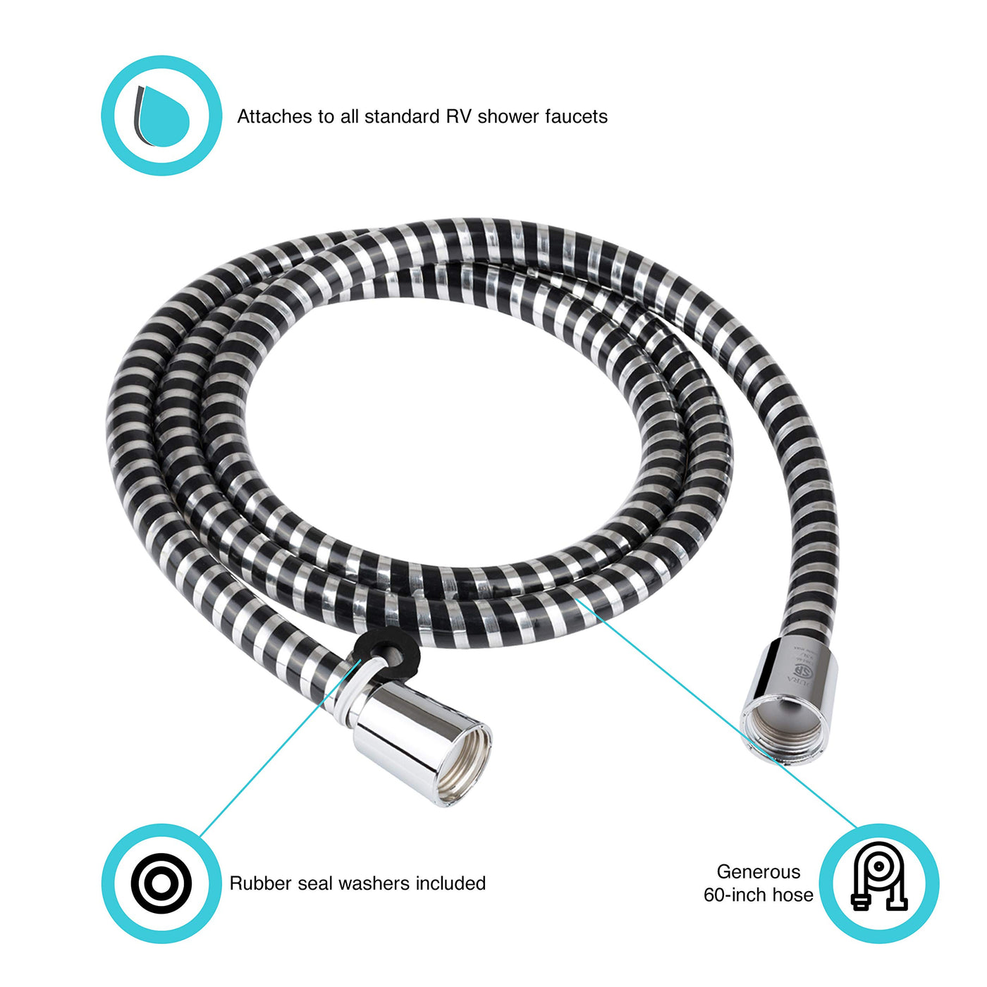 Q: What is the length of the Dura Faucet DF-SA230-CP RV shower hose?A: The Dura Faucet DF-SA230-CP RV shower hose is 60 inches long, providing ample length for comfortable use in your recreational vehicle.