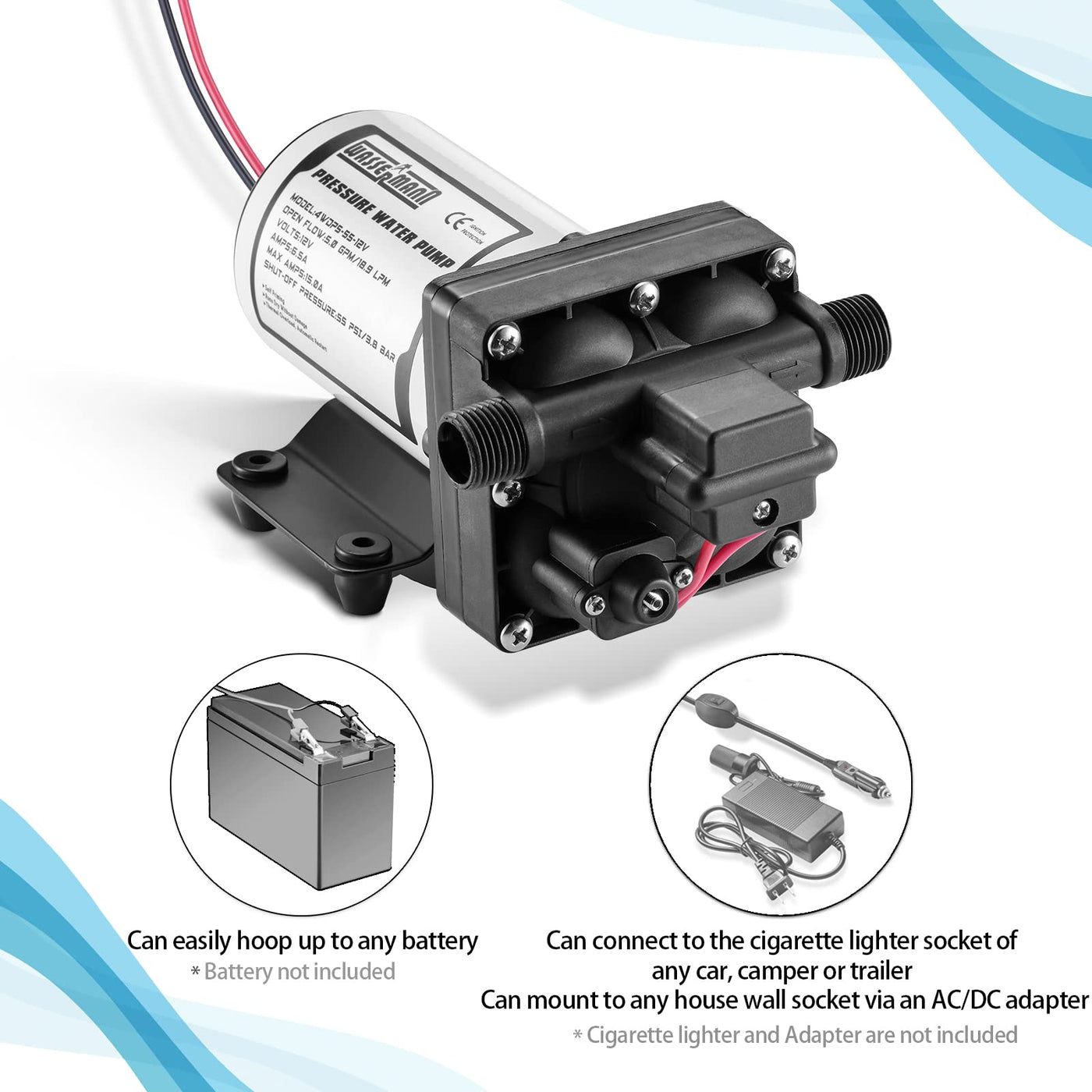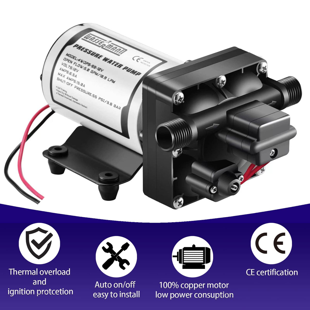 Wassermann Rv Water Pump 12V Dc, Self Priming Diaphragm Pump 5.0 Gpm 55 Psi, Water Pressure Pump With Pressure Switch, For Rv Ma