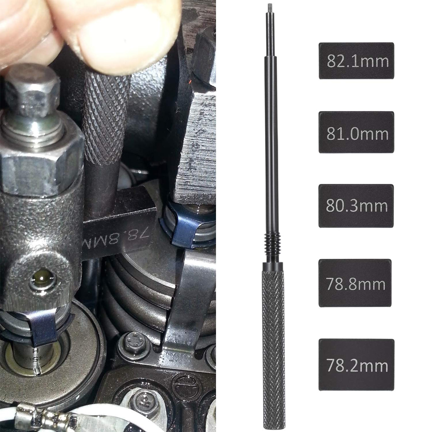 Q: What gauge blocks are included in the kit?A: The kit includes five gauge blocks measuring 78.2mm, 78.8mm, 80.3mm, 81.0mm, and 82.1mm, allowing for precise injector height adjustments.