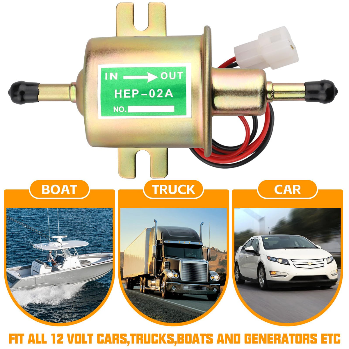 12V Electric 1/4 Fuel Pump Universal Low Pressure Transfer Inline Fuel Pump For Motorcycle Carburetor Lawn Mower Gas Diesel Engine 2.5-4Psi Hep-02A