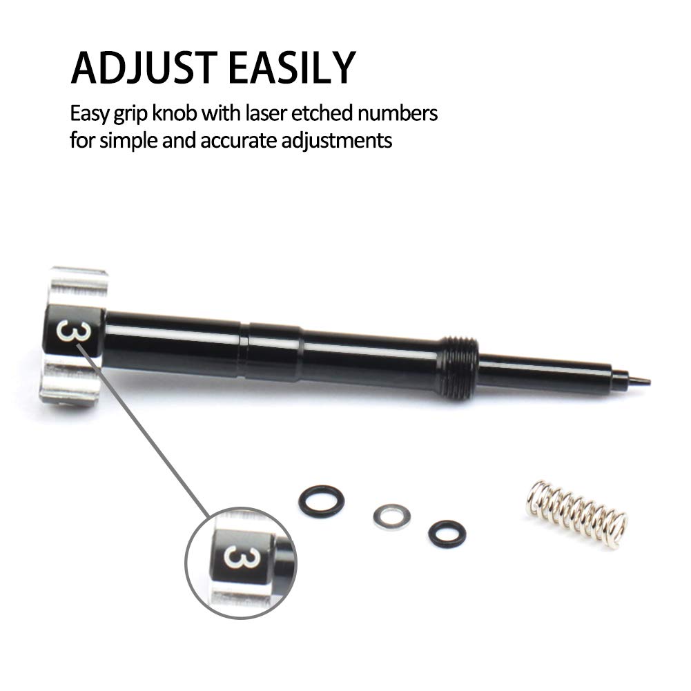 Q: How easy is it to install and adjust the Air Fuel Mixture Screw?A: The installation is straightforward as it comes with a spring, washer, and O-ring. The easy grip knob with laser-etched numbers allows for simple and accurate adjustments without the need for special tools.