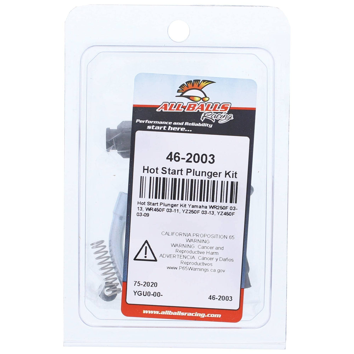 Q: What models is the All Balls Hot Start Plunger Kit 46-2003 compatible with?A: The All Balls Hot Start Plunger Kit 46-2003 is compatible with Yamaha models WR250F (2003-2014), WR450F (2003-2011), YZ250F (2003-2013), and YZ450F (2003-2009).