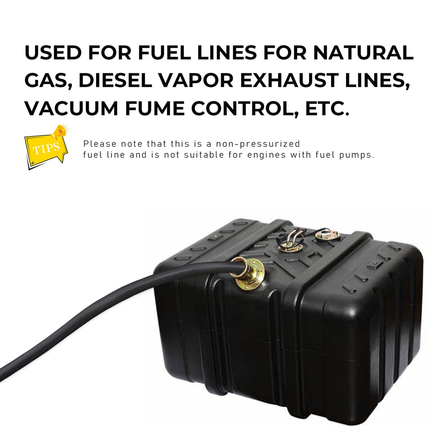 Q: Is the Augeny fuel line hose suitable for pressurized fuel systems?A: No, the Augeny fuel line hose is designed as a non-pressurized fuel line and is not suitable for generators or engines with fuel pumps. It is intended for gravity-fed systems and low-pressure applications.