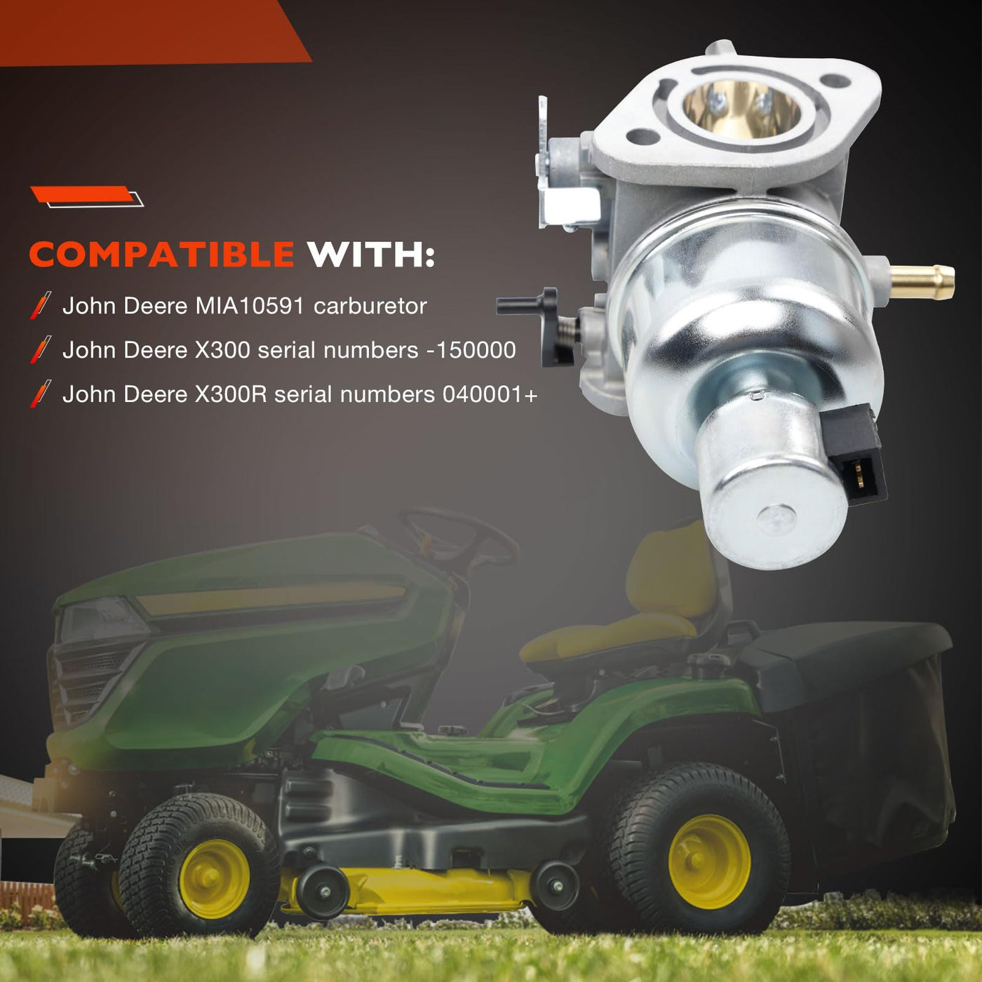 Carburetor Compatible with John Deere MIA10591 X300 X300R X304 Series Tractor,Carb Tune Up Kit Includes Fuel Pump & Spark Plug &
