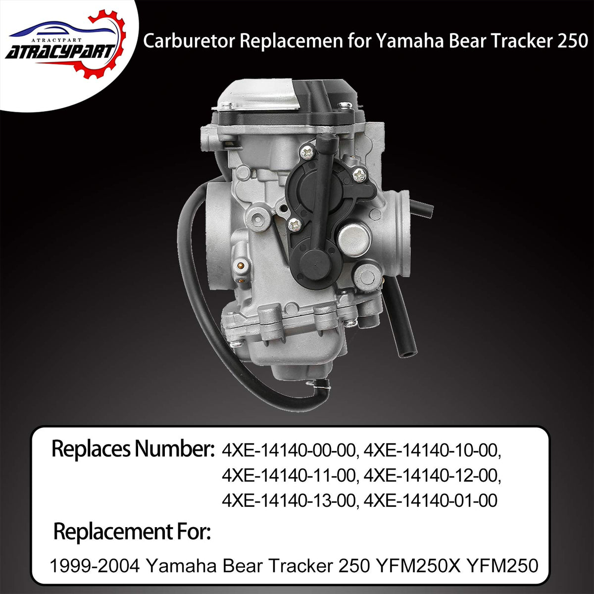 Q: What Yamaha models are compatible with this carburetor replacement?A: This carburetor replacement is specifically designed for the 1999-2004 Yamaha Bear Tracker 250, including models YFM250 and YFM250X.