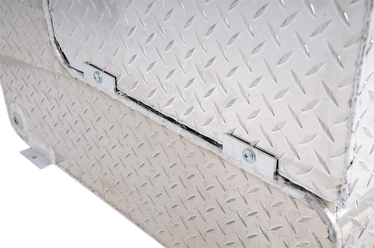 Q: What materials are used in the construction of the Dee Zee DZ92656 Transfer Tank?A: The transfer tank is constructed from heavy gauge Brite-Tread aluminum, ensuring durability and resistance to corrosion.
