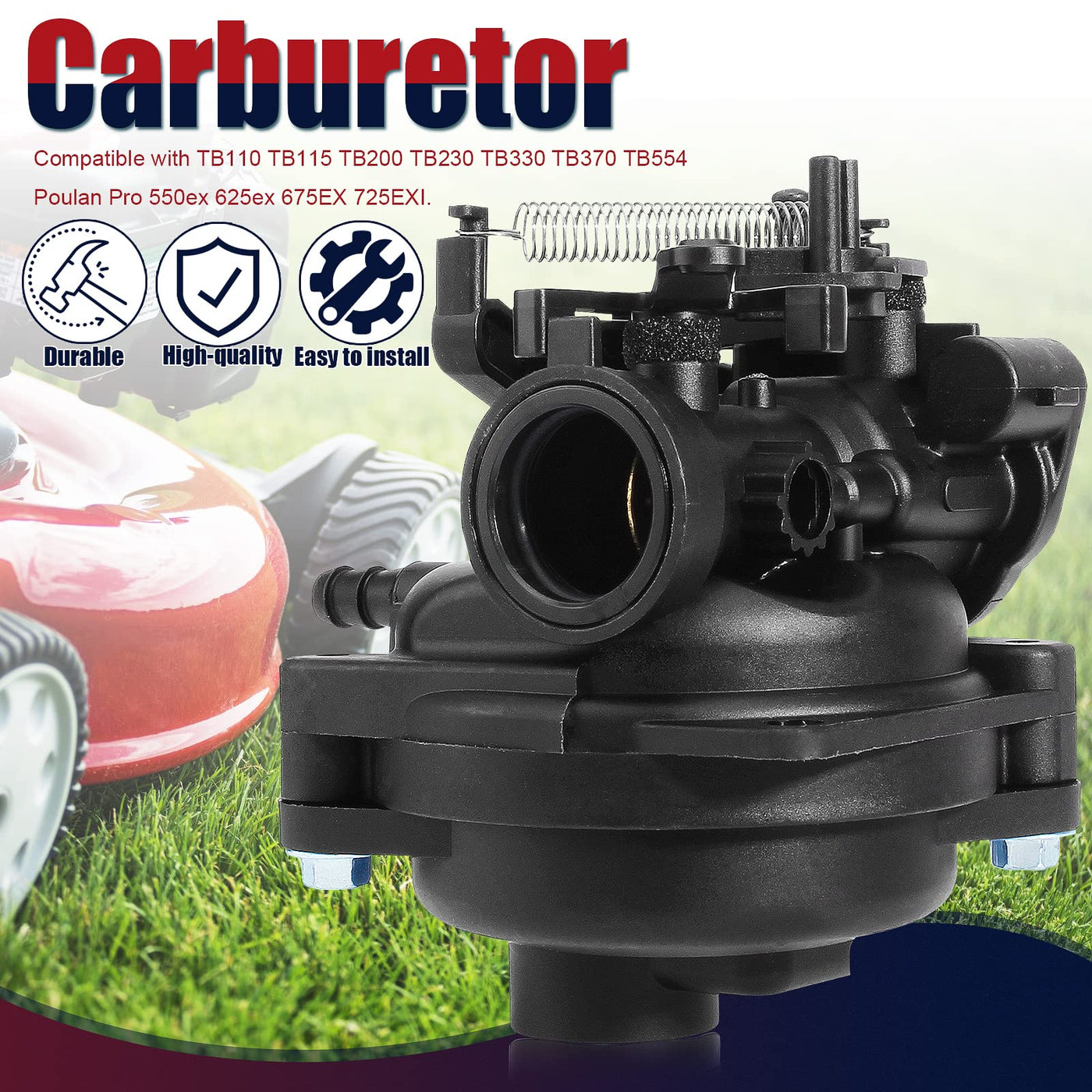 Specifications: 100% Brand New And High-Quality Carburetor Kit. For Craftman 247372370, Lc 121P Push Mower. Fits Tb110 Tb115 Tb200 Tb230 Tb330 Tb370 Tb554 Poulan Pro 550Ex 625Ex 675Ex 725Exi. Replacement For: 592361 594057 594058 594529 799584. Manufactured To Exact Measurements To Meet Or Exceed Oem Specification. With Mount Parts As Picture, Match Up Exactly With Original Equipment In Perfect Fitness.