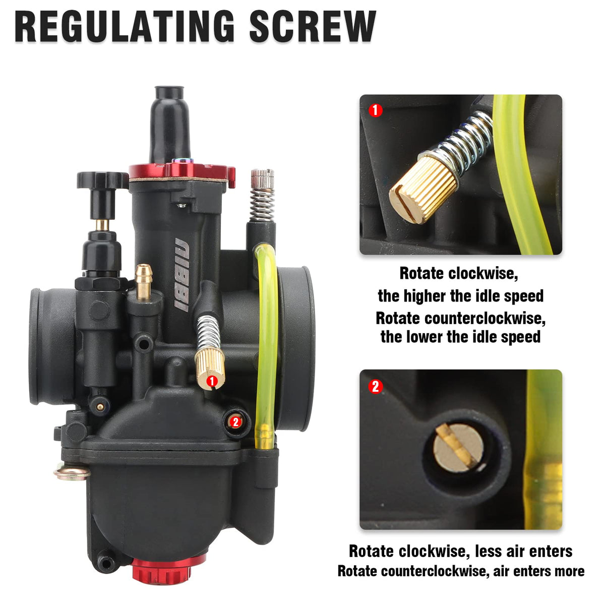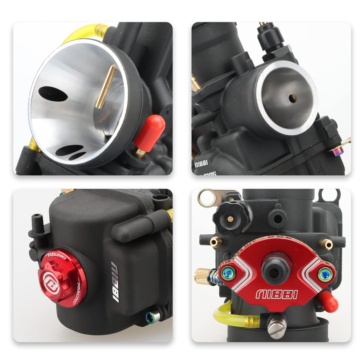 Q: How does the automatic mixture ratio adjustment work?A: The NIBBI PWK carburetor features a horn intake design that enhances airflow and stabilizes atomization. This allows it to automatically adjust the air-to-gasoline mixture based on the engine's working intensity, ensuring optimal performance.