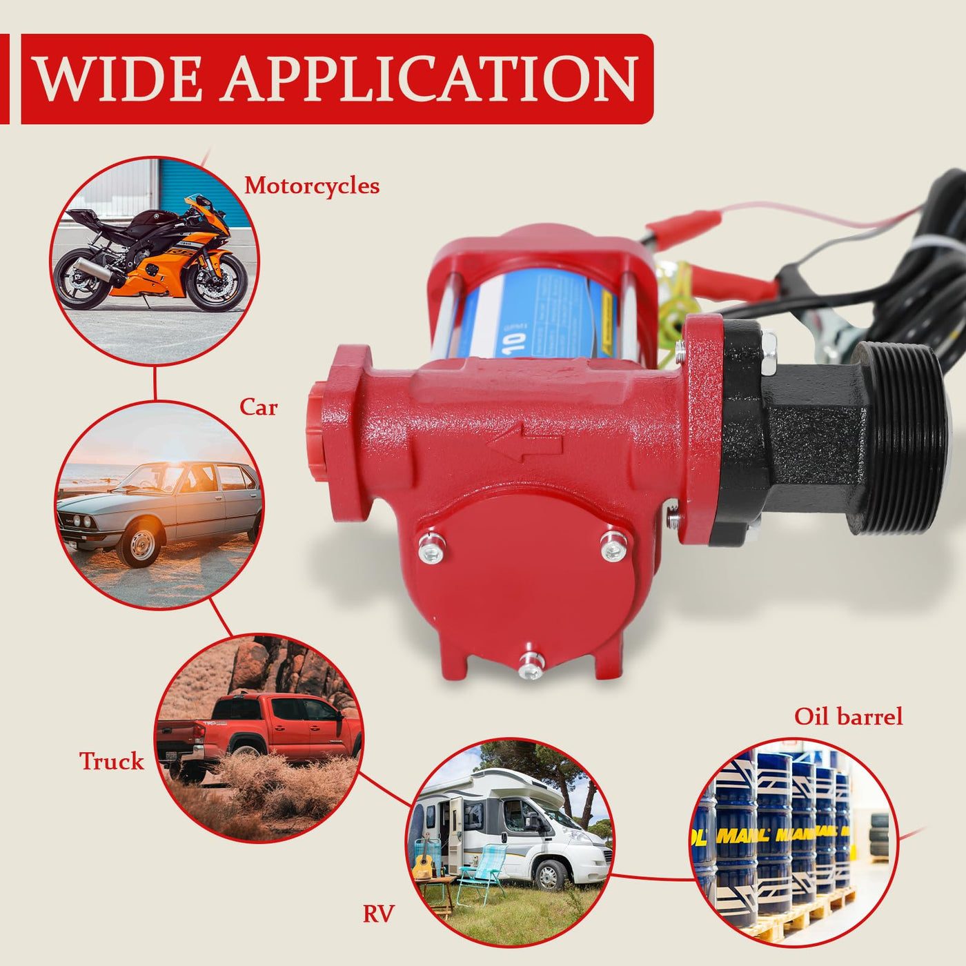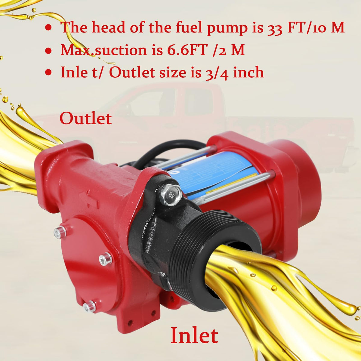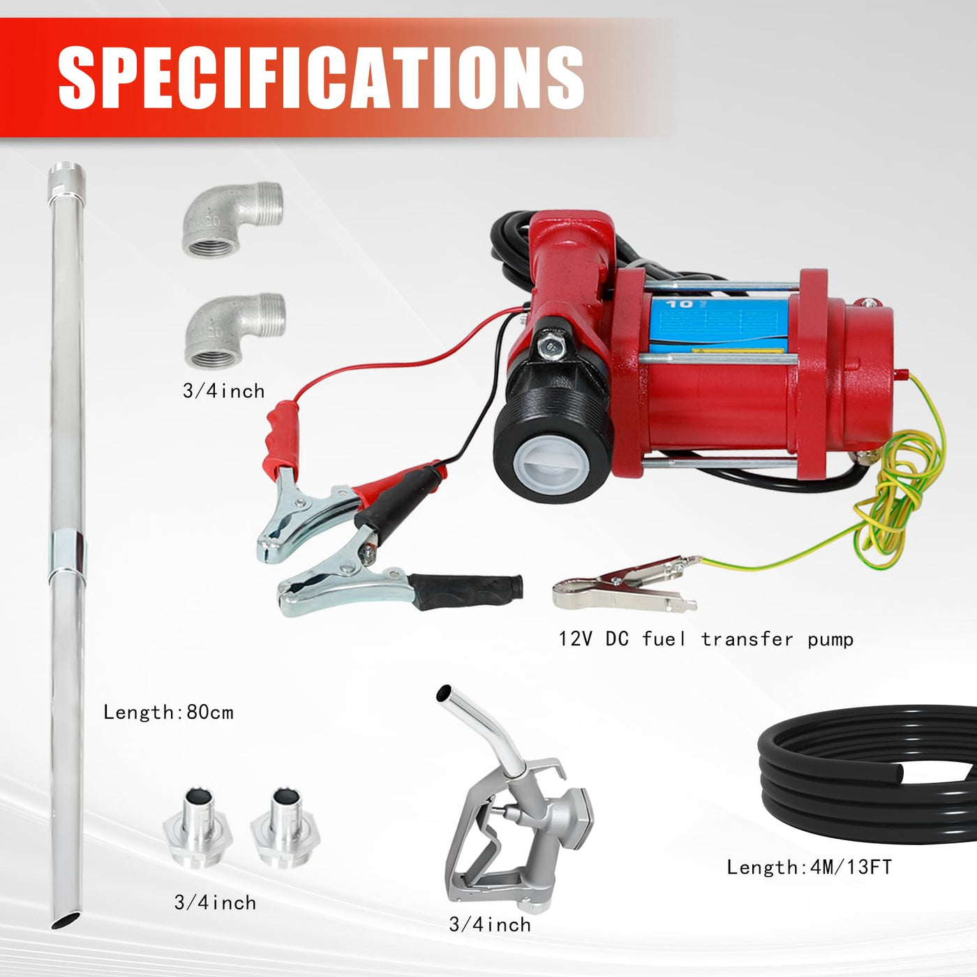 12V DC fuel transfer pump Model:YHM-2210D Power:1/4HP Voltage:DC12Volt Flow Range(GPM):10 Working Amps:12.5A Max Amps: 15A Inlet/out:NPT 3/4 Max. head:33 FT Max. suction: 6.6 FT Compatiable Fluids: Gasoline/Diesel Duty cycle:30 mins Nozzle Type: Manual 1 x Particulate Filter