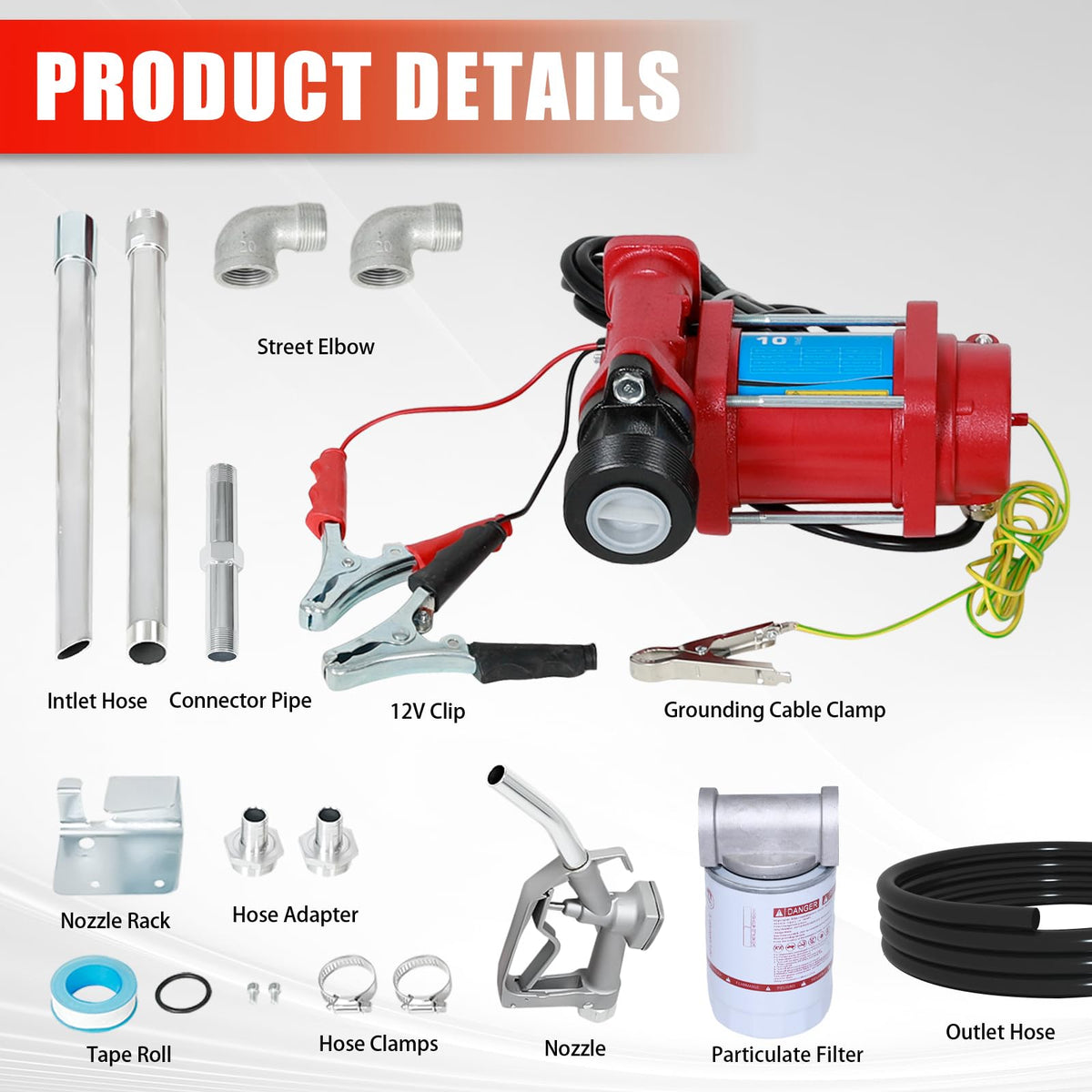 SUPERFASTRACING 10GPM 12V DC fuel transfer pump with Nozzle Kit for Gasoline Diesel Red with Particulate Filter