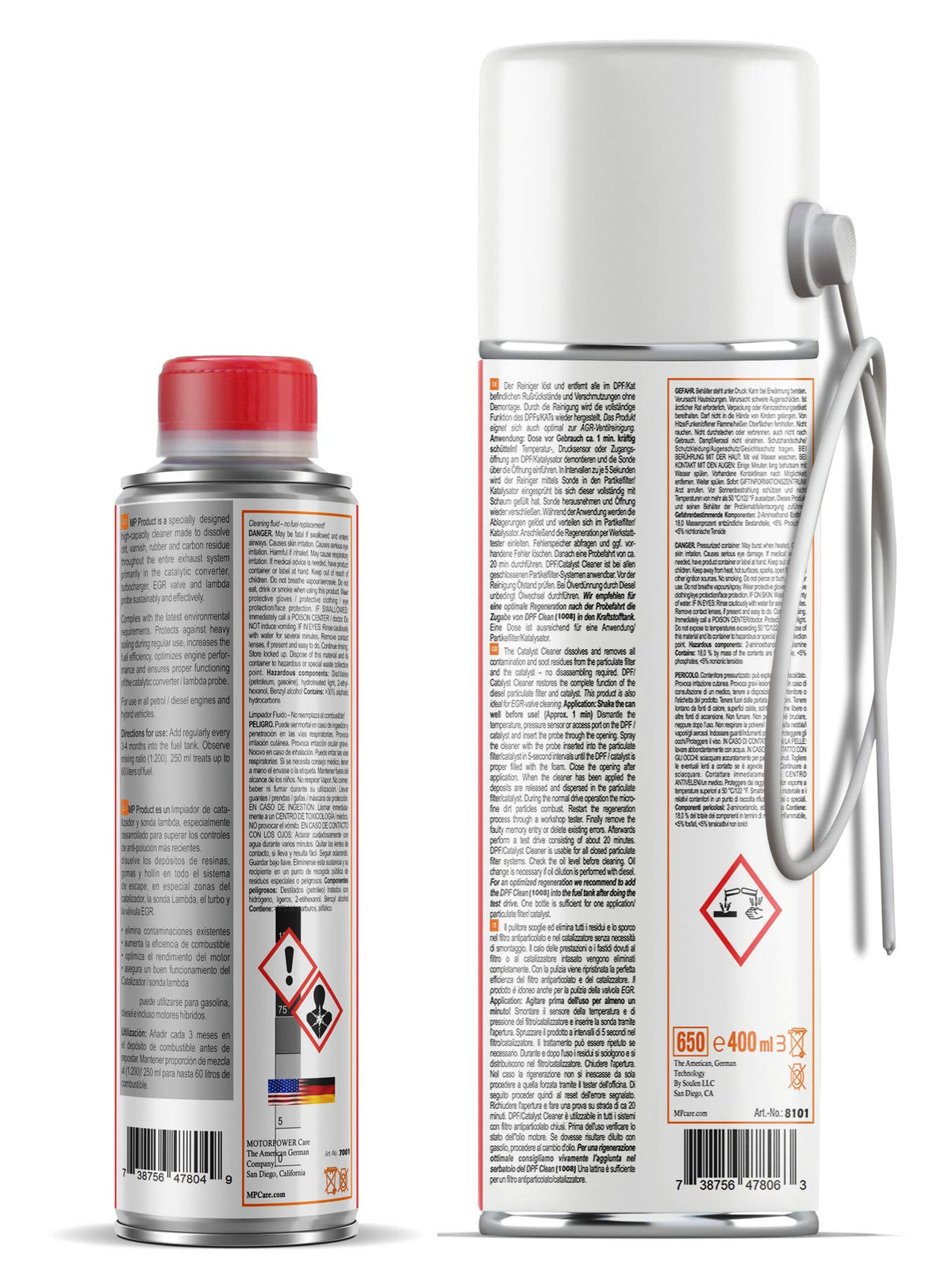 Intensive cleaning for the catalytic converter, this kit includes two products, one goes in the gasoline tank and the other foam cleaner spray directly on the catalyst from the O2 sensor port. high quality new technology design by the leaders in this industry. we always advise to inspect the catalyst from any cracks, before using the cleaner. ADVANTAGES - Removes existing deposits - Provides protection against heavy dirt with regular use - Provides the engine performance Restores - Ensuring the proper operation of the catalytic converter / turbocharger and the EGR valve - Product properties: For use in all petrol and diesel engines and hybrid vehicles.