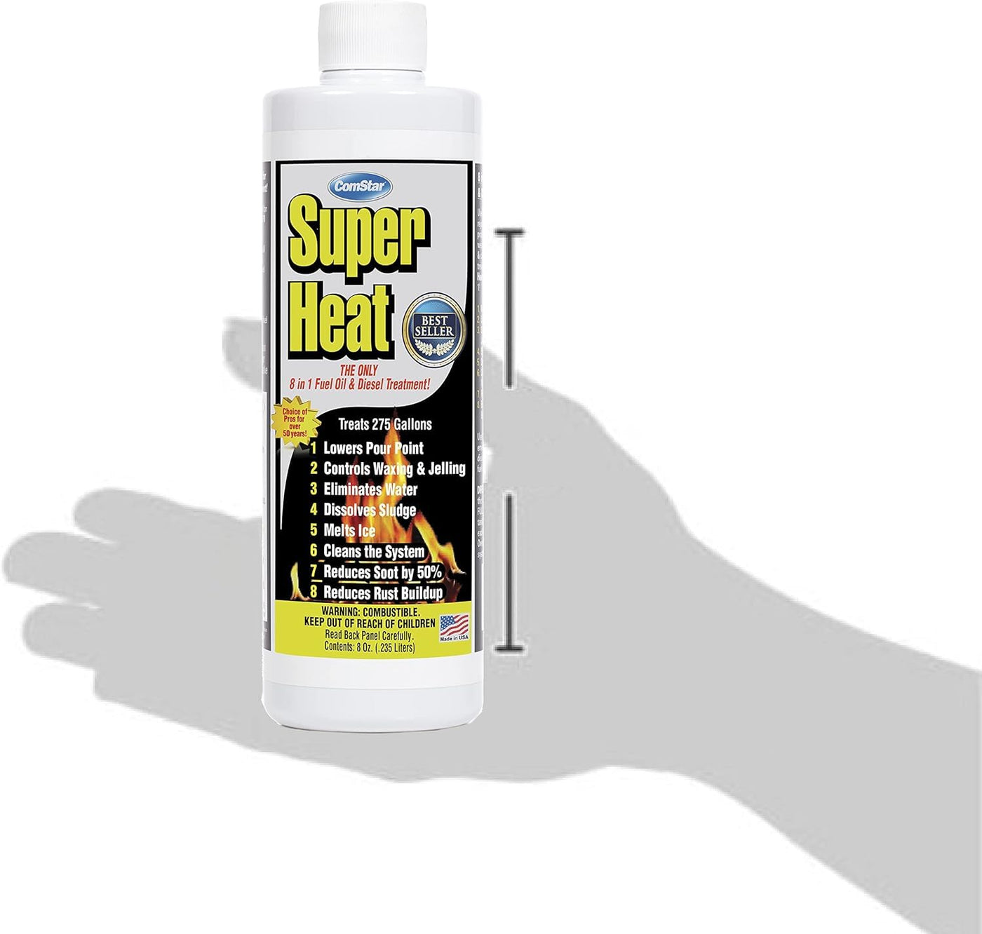 ComStars Super Heat has been a trusted solution for over 45 years, offering comprehensive care with 8 treatments in 1. It supports smooth operation by melting ice, lowering the pour point, managing waxing and jelling, reducing water, dissolving sludge, cleaning parts, minimizing soot, and helping protect against rust.Fuel treatments are essential for maintaining fuel system performance. Over time, impurities like carbon and water can accumulate, affecting efficiency. Regular use of Super Heat helps reduce these issues and supports consistent operation.In colder climates, fuel can thicken, potentially impacting flow. Super Heat helps maintain optimal performance in low temperatures, ensuring fuel systems operate effectively throughout the year. Add 8 oz. with each 275-gallon refill to keep systems running smoothly.