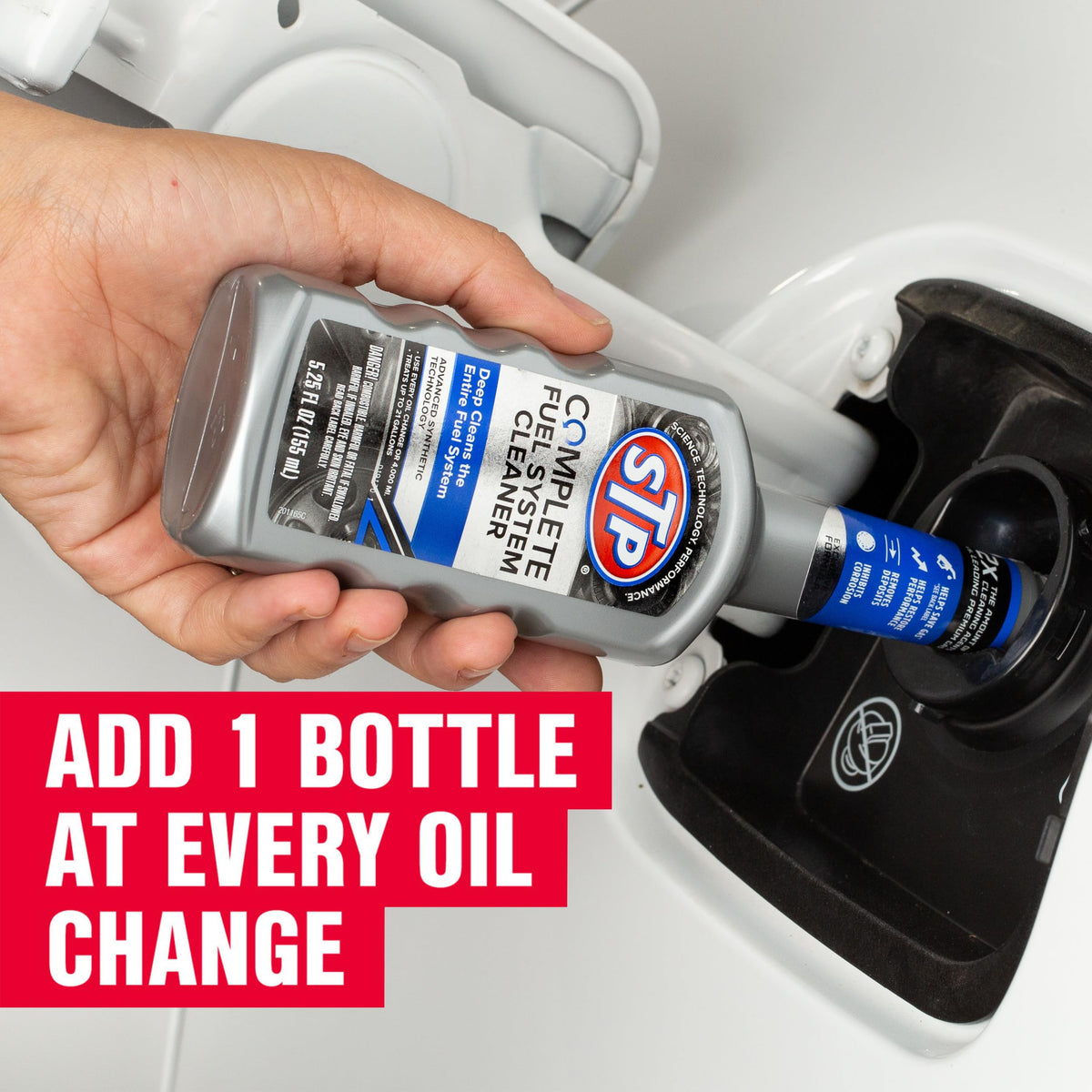 Want to maximize fuel efficiency and avoid problems such as rough idling, weak acceleration, stumbling and stalling? STP fuel additive products can help. Our redesigned fuel additive bottles are compatible with cap-less fuel tanks. STP Complete Fuel System Cleaner removes deposits from your entire fuel system. This STP formulation helps clean your entire fuel system in order to restore it to its optimum operating condition. It contains jet fuel, a high-quality carrier of active ingredients.