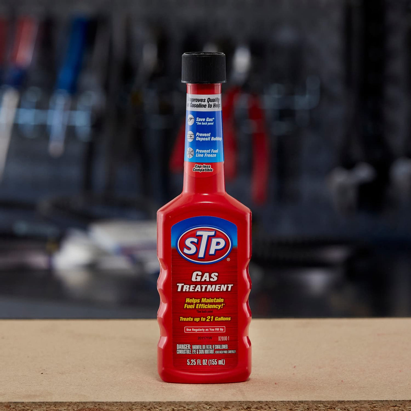 STP Gas Treatment improves the quality of gas by adding powerful cleaning agents that help fight the accumulation of harmful carbon, gum and varnish deposits in the fuel system that can reduce performance. Also engineered to remove water, which can lead to fuel line freeze. This product is made with jet fuel, a high-quality carrier of active ingredients.
