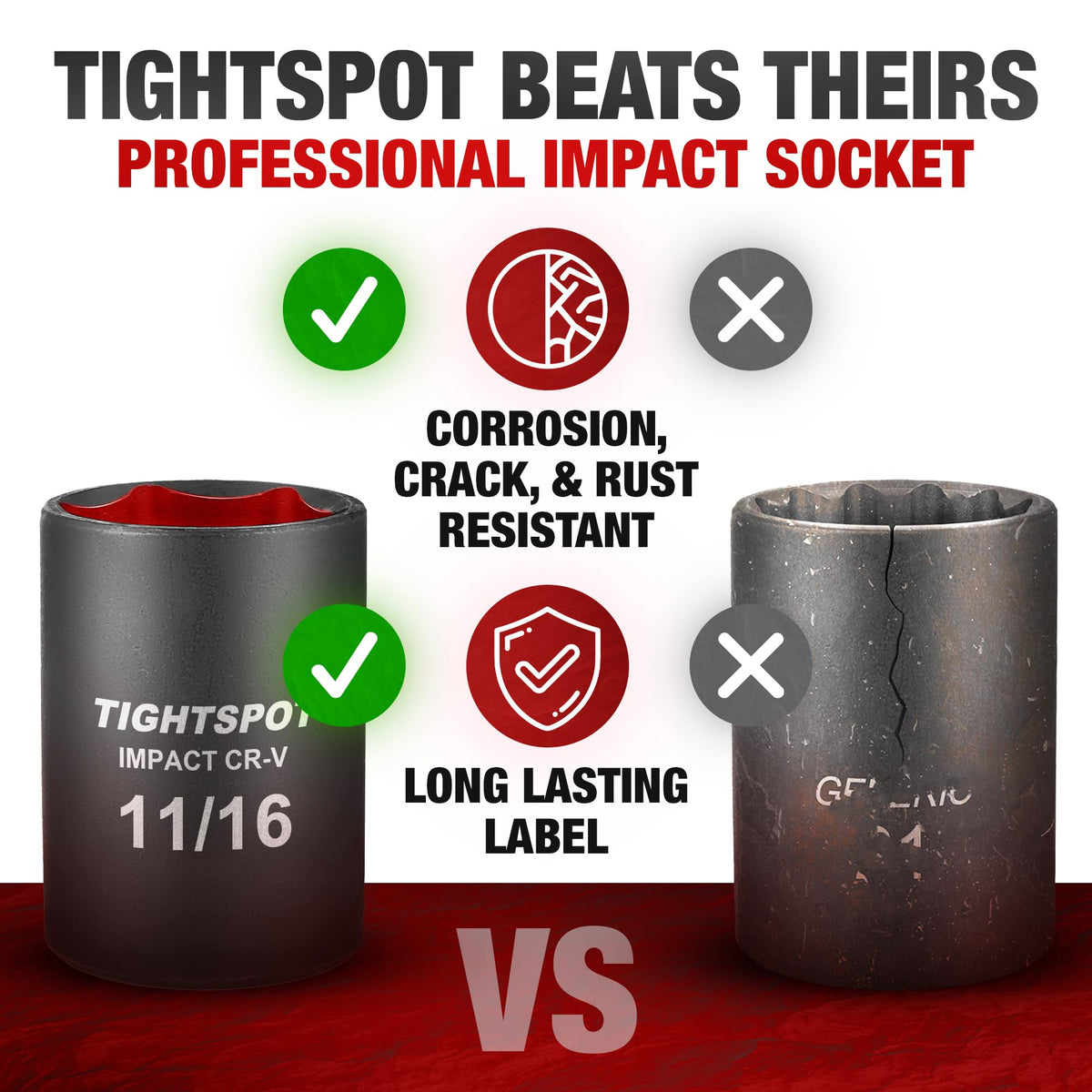 Q: Can this socket be used with power tools?A: Yes, the 1/2" Dr 11/16” TIGHTSPOT Shallow Impact Socket is designed to work effectively with power tools, providing optimal performance for various automotive and mechanical applications.
