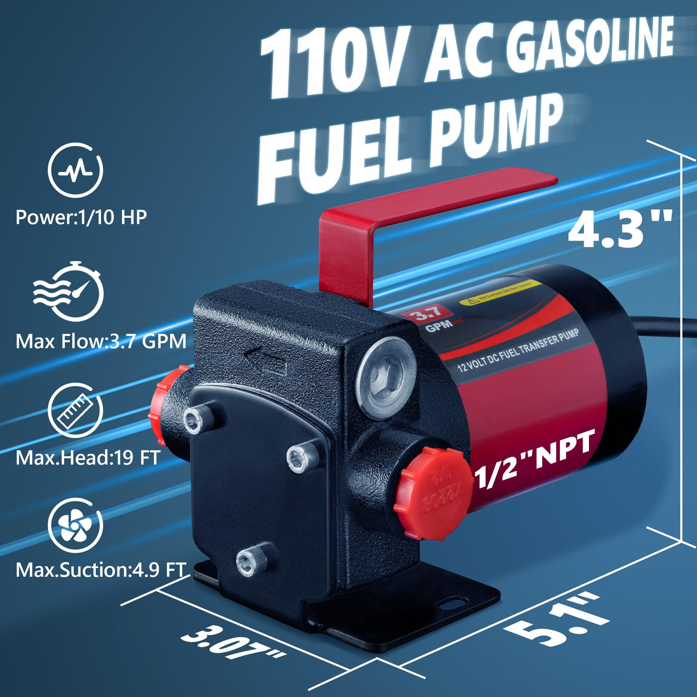 110V Ac Gasoline Fuel Pump, Self-Priming Fuel Transfer Pump, Reversible Pumping, Overheat Protection, Explosion-Proof, Suitable