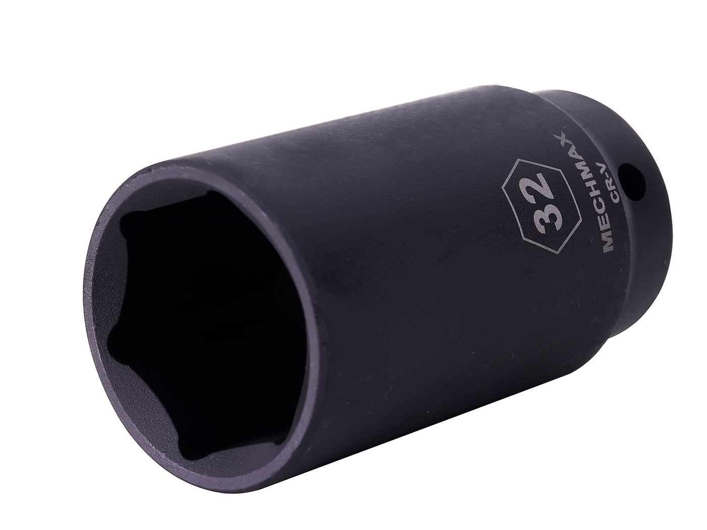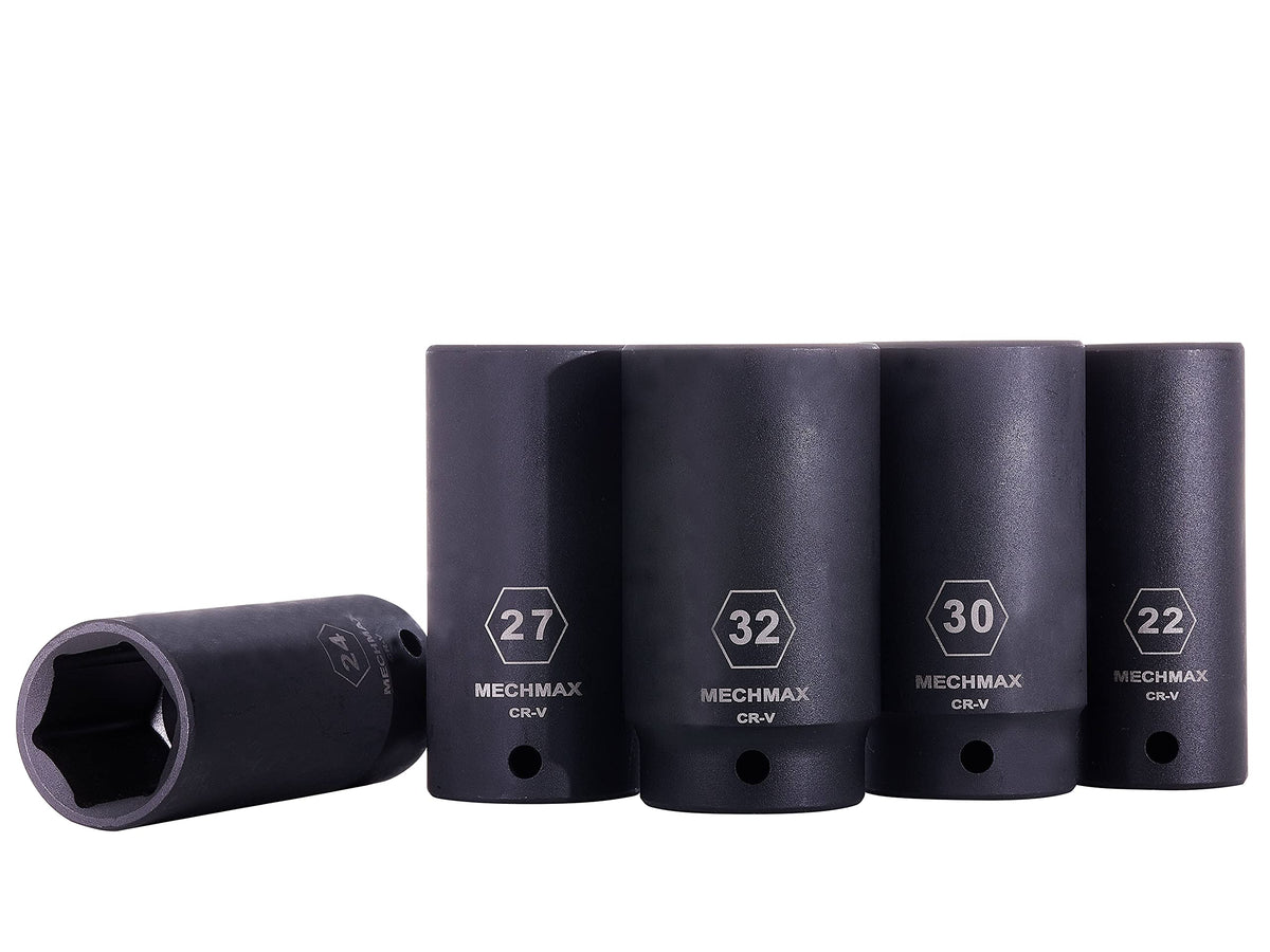 Q: What sizes are included in the MECHMAX 14 Piece Deep Socket Set?A: The MECHMAX 14 Piece Deep Socket Set includes sizes ranging from 10 mm to 32 mm, specifically 10, 12, 13, 14, 15, 17, 18, 19, 21, 22, 24, 27, 30, and 32 mm.