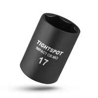 Q: What is the size and drive type of the TIGHTSPOT Shallow Impact Socket?A: The TIGHTSPOT Shallow Impact Socket features a 3/8 inch drive and is designed for a 17mm size, making it suitable for a variety of automotive and mechanical applications.